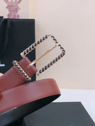 BELT 30MM IN BLACK AND RED CALFSKIN WITH INTERWOVEN GOLD CHAIN BUCKLE
