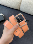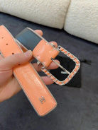 BELT 40MM IN CORAL CALFSKIN WITH INTERWOVEN CHAIN BUCKLE ZIPPER IN TRIM SILVER HARDWARE