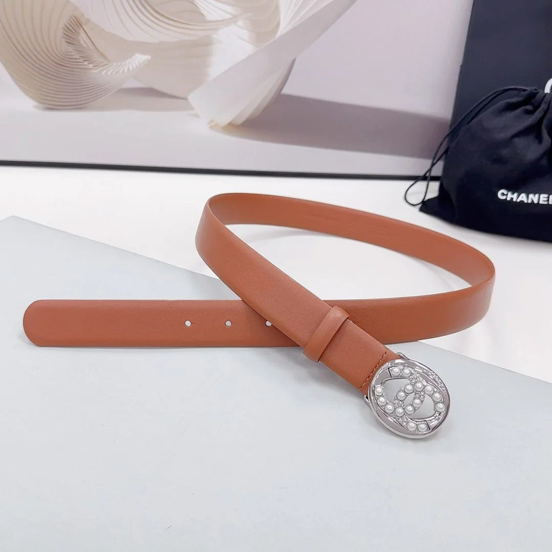 CC 30MM BELT IN ALLOY ORANGE CALFSKIN SILVER HARDWARE ATTACH PEARLS