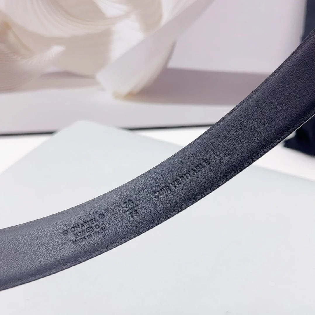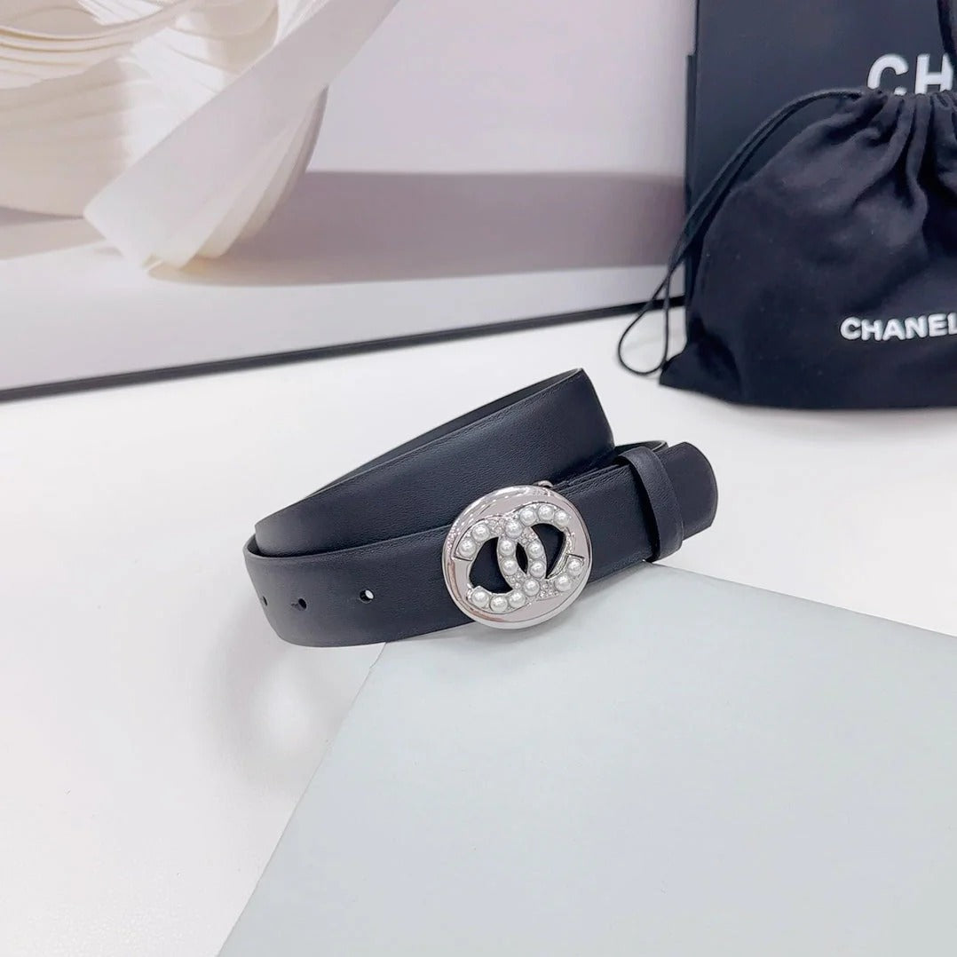 CC 30MM BELT IN BLACK CALFSKIN SILVER HARDWARE ATTACH PEARLS