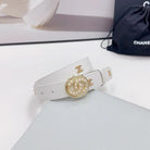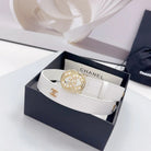 CC 30MM BELT IN WHITE CALFSKIN GOLD HARDWARE ATTACH PEARLS