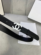 CC WOMEN'S BELT 3.0CM LEATHER EPSOM BLACK BUCKLE SILVER