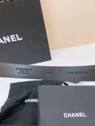 DOUBLE C BELT 20MM IN BLACK CALFSKIN WITH SILVER CHAIN INTERWOVEN BUCKLE