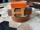 HM CONSTANCE BELT BUCKLE & REVERSIBLE BRONZE BROWN LEATHER STRAP 38MM GOLD HARDWARE