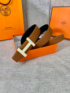 HM CONSTANCE BELT BUCKLE & REVERSIBLE TAWNY BROWN LEATHER STRAP 38MM GOLD HARDWARE