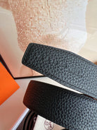 HM H D'ANCRE BELT BUCKLE & REVERSIBLE BLACK LEATHER STRAP 38 MM SILVER HARDWARE