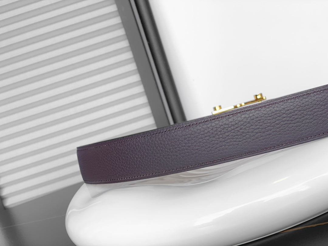HM REVERSIBLE BLACK AND CHESTNUT BROWN LEATHER STRAP 32 MM GOLD HARDWARE