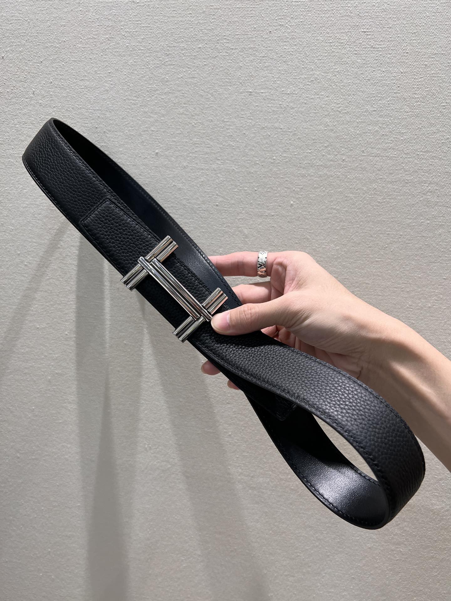 HM TRAVERSE BELT BUCKLE & REVERSIBLE BLACK LEATHER STRAP 38 MM SILVER HARDWARE