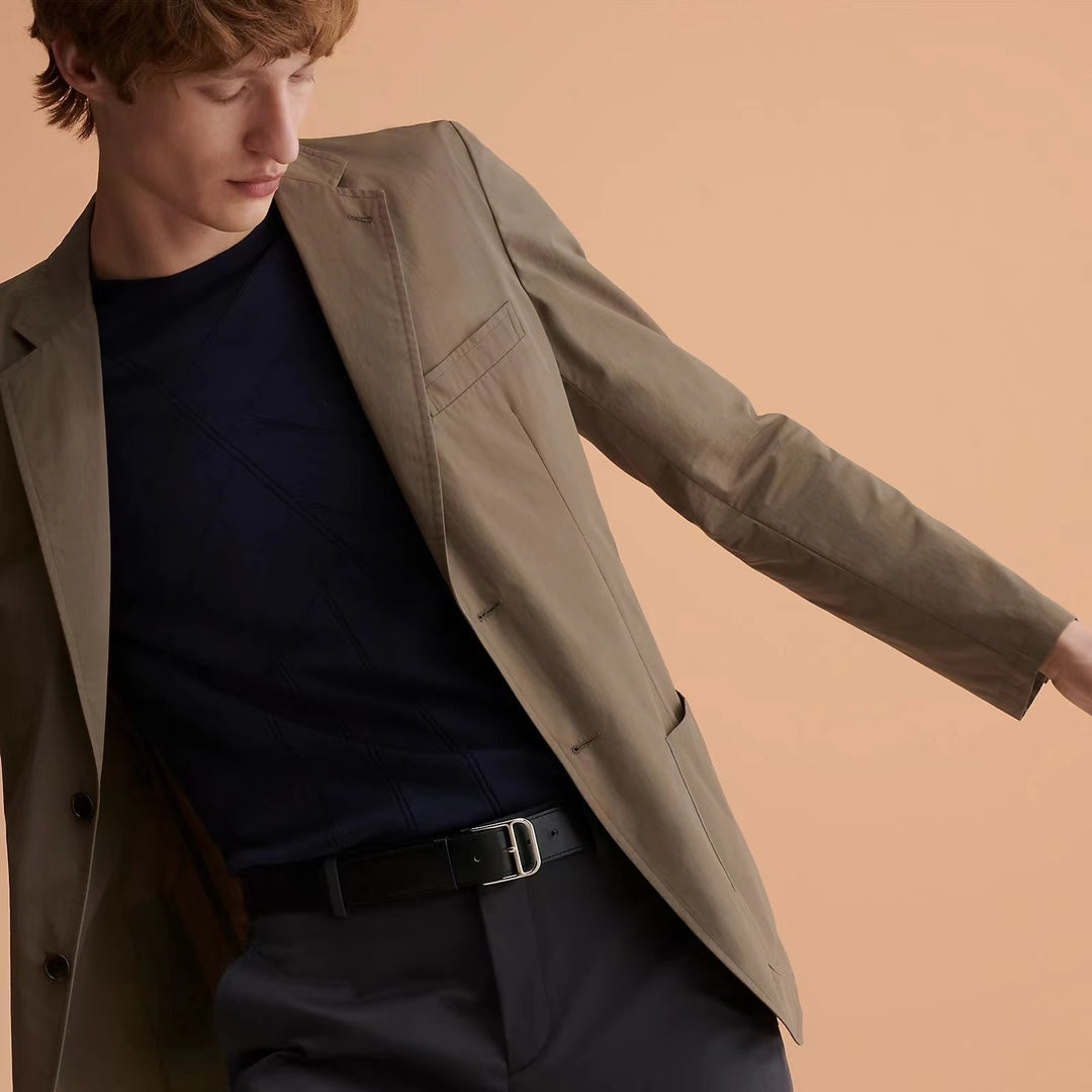 HM H BELT BUCKLE & REVERSIBLE CAMEL BROWN LEATHER STRAP 38MM SILVER HARDWARE