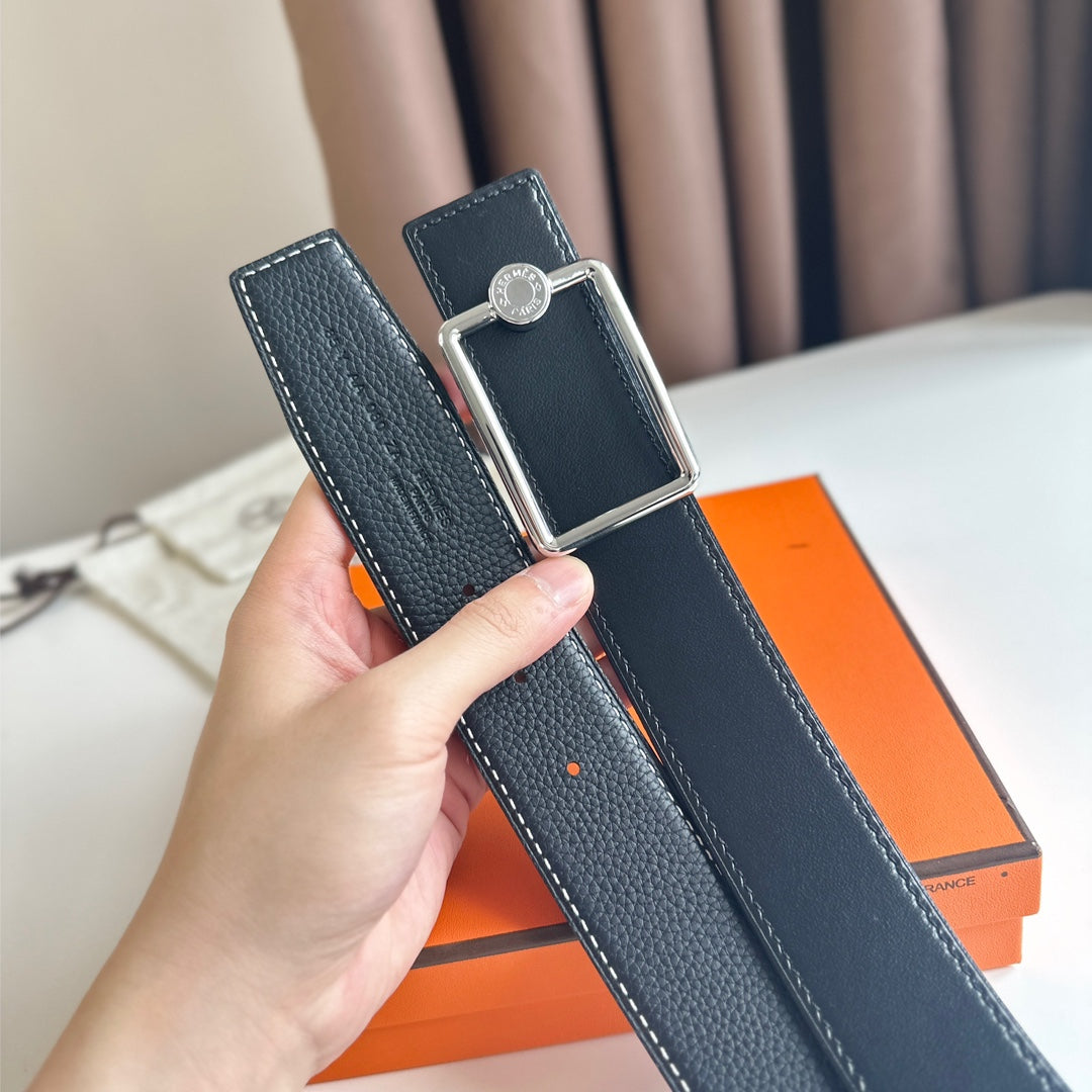HM H BELT BUCKLE & REVERSIBLE BLACK AND WHITE LEATHER STRAP 38MM BLACK HARDWARE