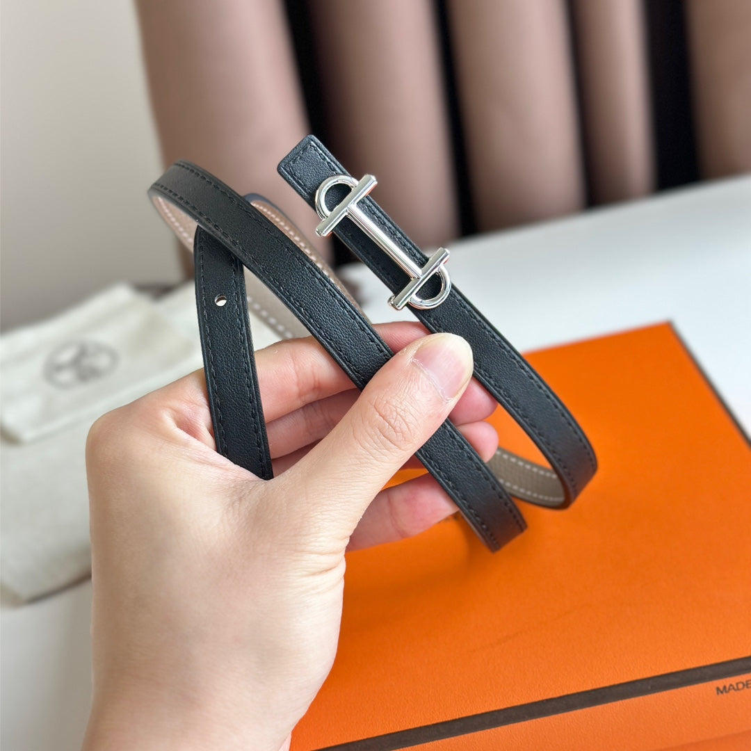 HM GAMMA BUCKLE & REVERSIBLE BLACK LEATHER STRAP 13MM SILVER HARDWARE