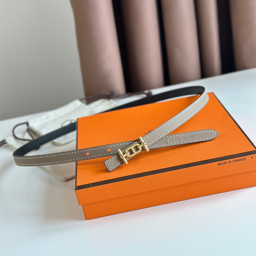 HM GAMMA BUCKLE & REVERSIBLE WHITE AND ORANGE LEATHER STRAP 13MM GOLD HARDWARE