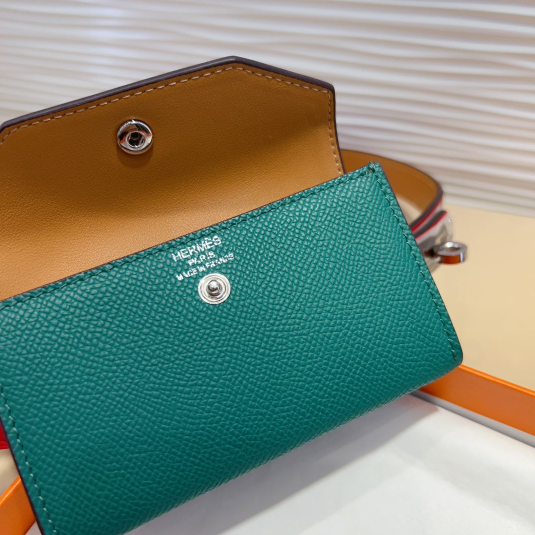 HM KELLY TEAL GREEN POCKET 18MM BELT CHERRY RED LEATHER GOLD HARDWARE