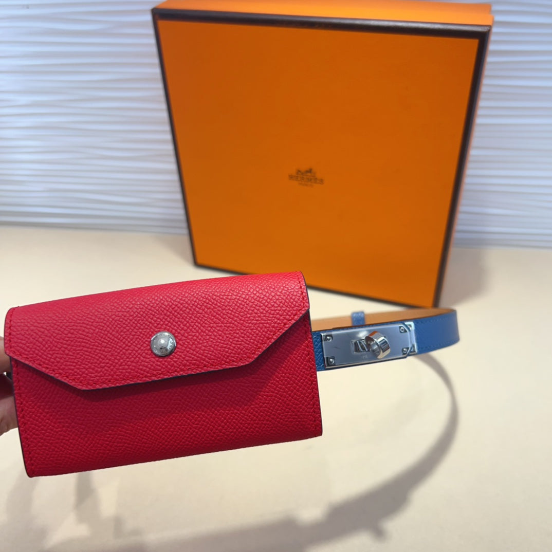 HM KELLY POCKET 18MM BELT CHERRY RED LEATHER GOLD HARDWARE
