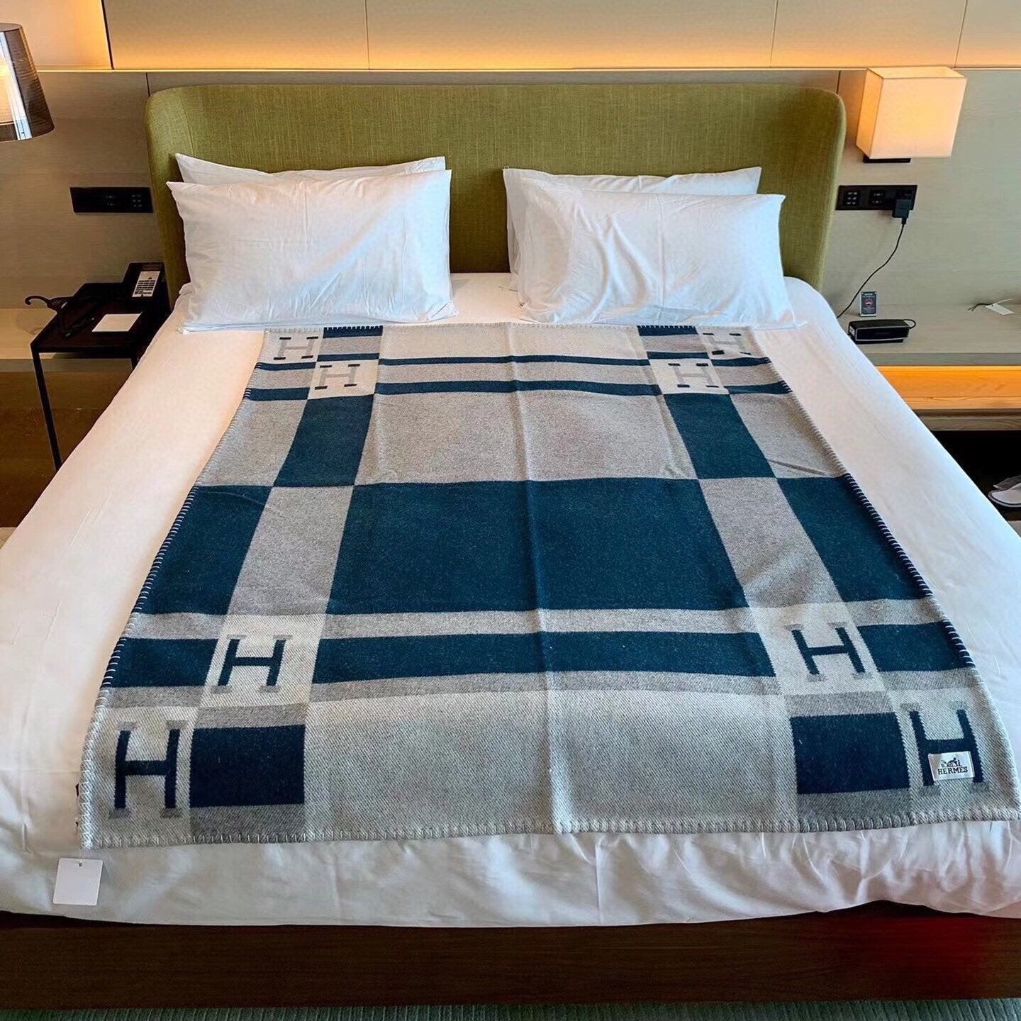 HM Avalon Throw Blanket Blue Grey Wool Cashmere