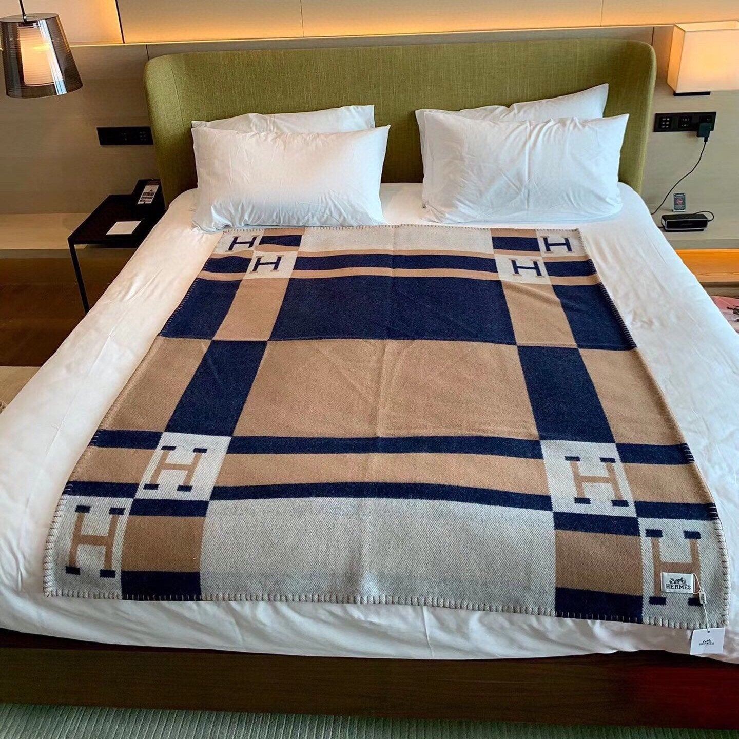 HM Avalon Throw Blanket Brown Blue Wool Cashmere