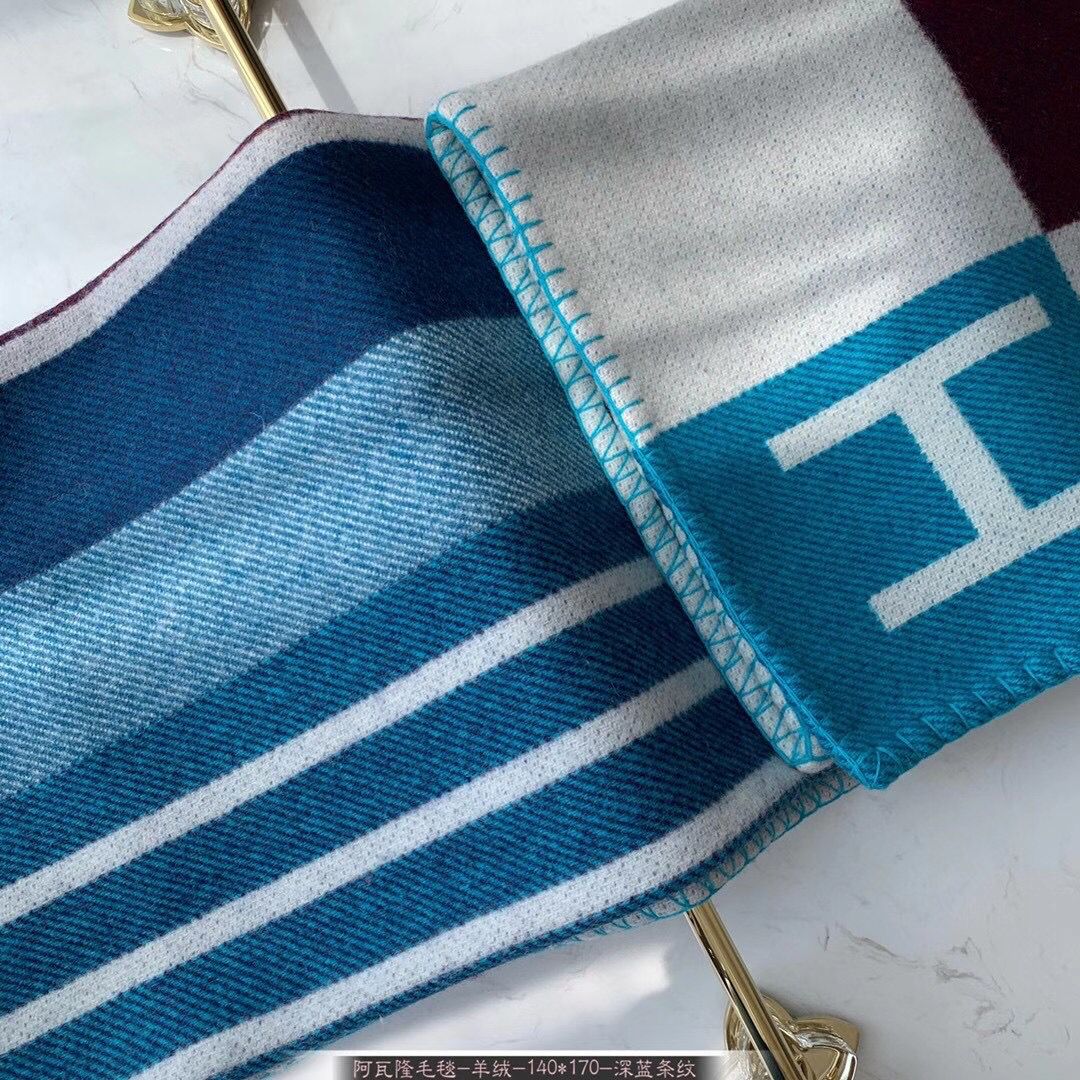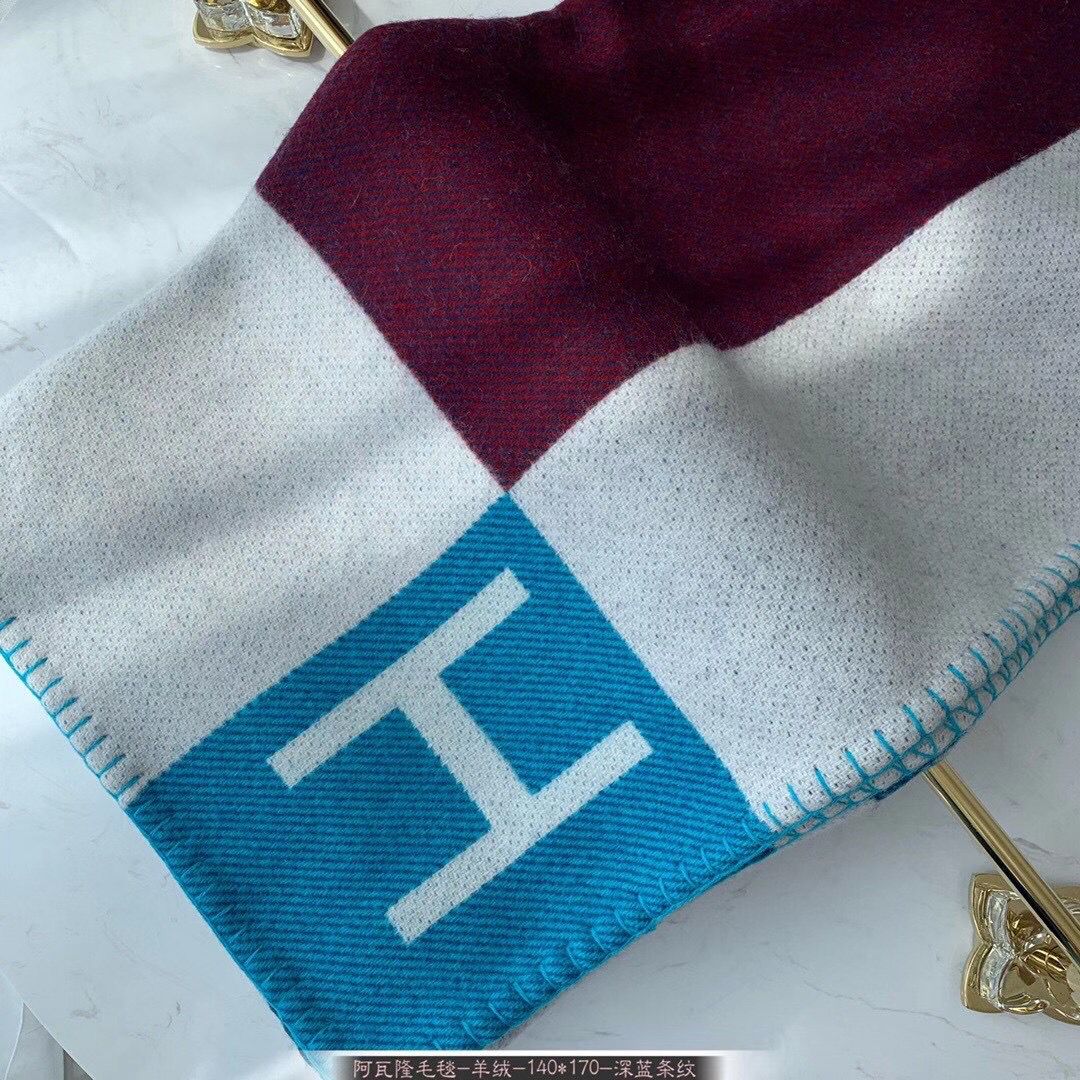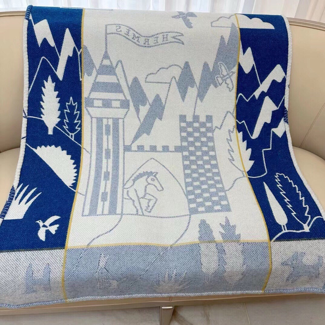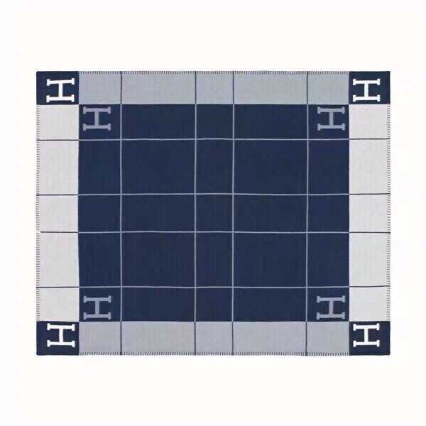 HM Avalon Throw Blanket Marine White Wool Cashmere