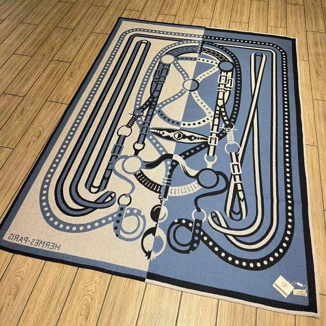 HM Avalon Throw Blanket Ecru Indigo Wool Cashmere