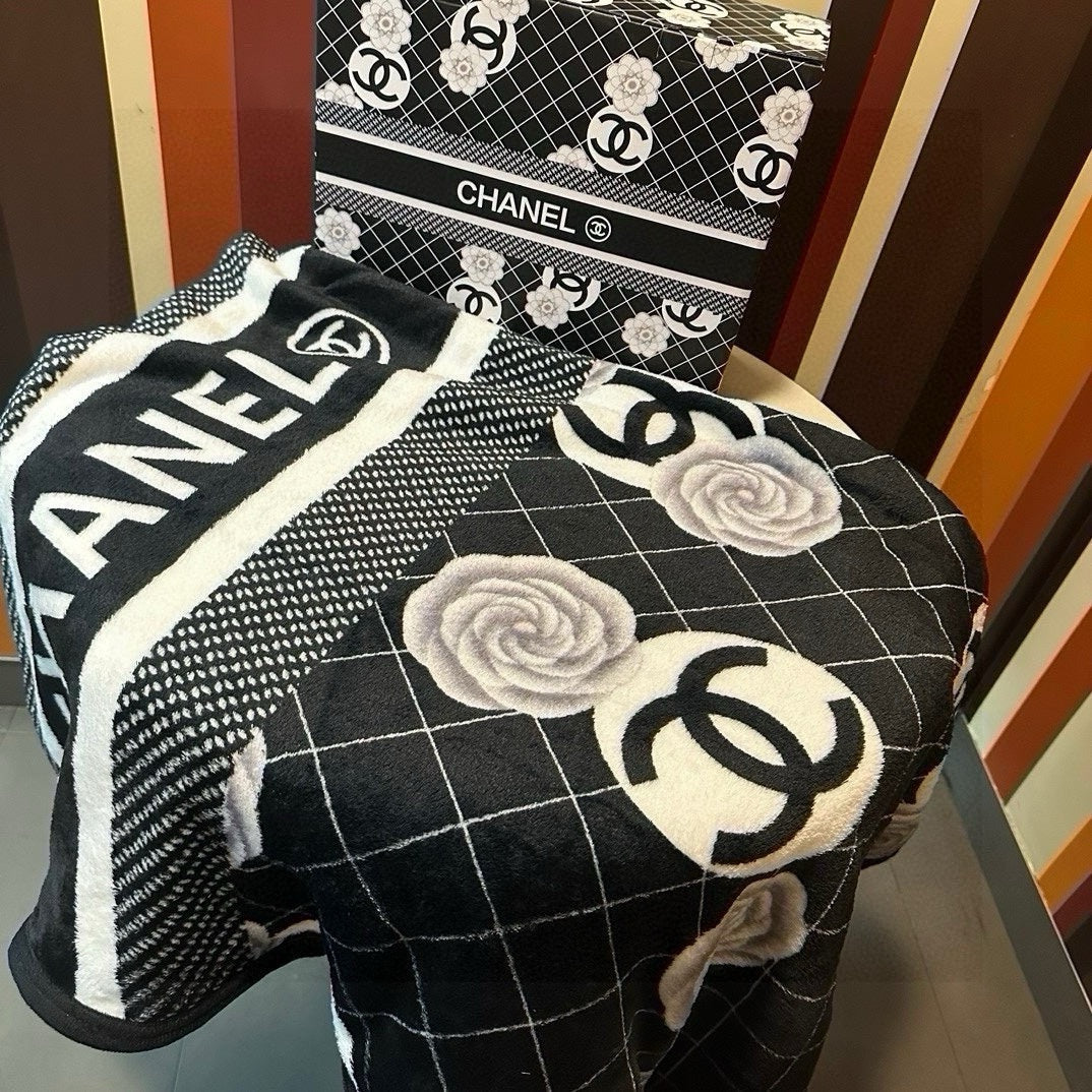 NEO MONOGRAM BLANKET IN WHITE MIX LIGHT GRAY MILK VELVET 273950