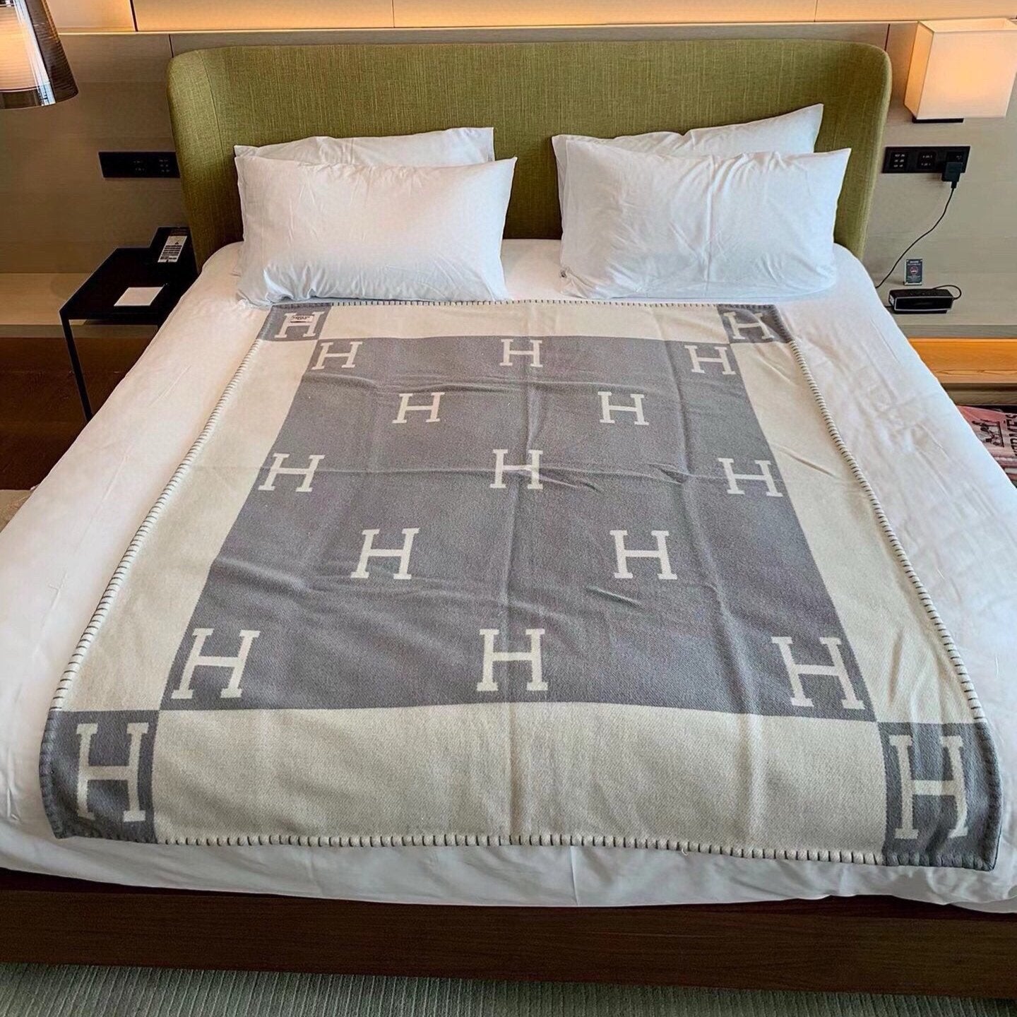 HM Avalon Throw Blanket Ecru Gris Wool Cashmere