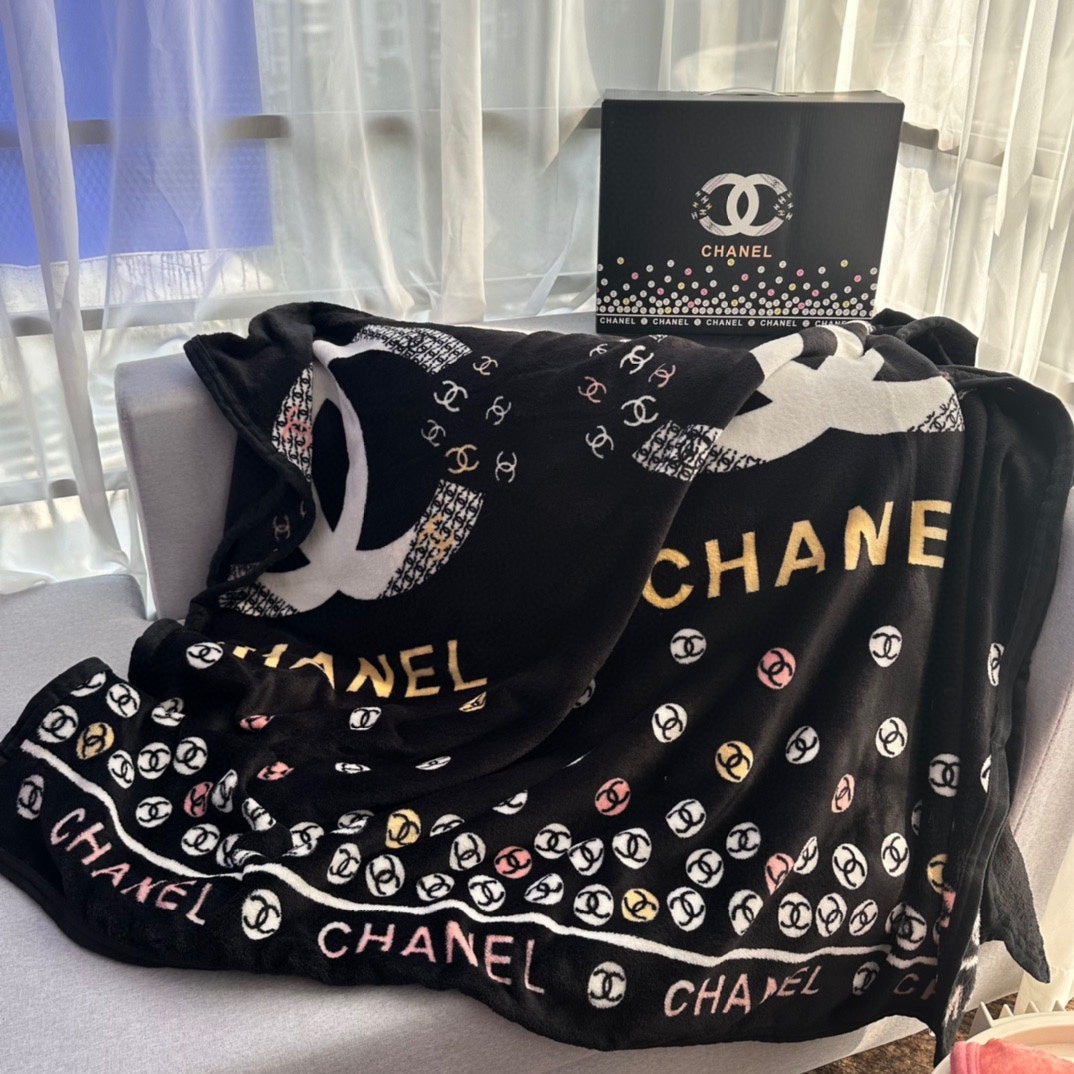 BLANKET IN BLACK MIX WHITE MONOGRAM LAMB FUR 423069