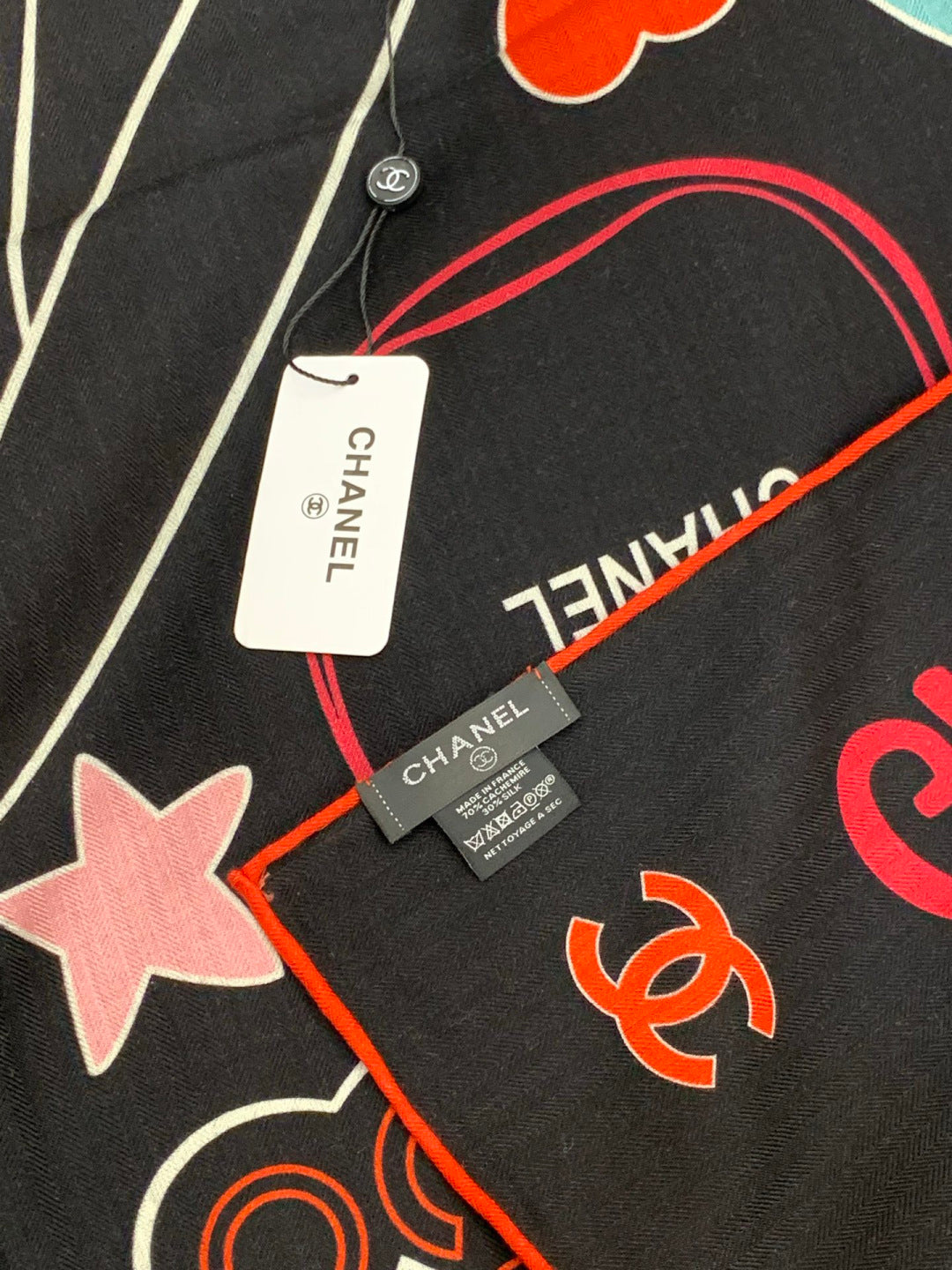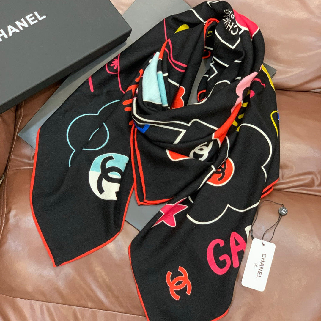 CC Scarf 135cm Black Mulberry Silk Cashmere 143724