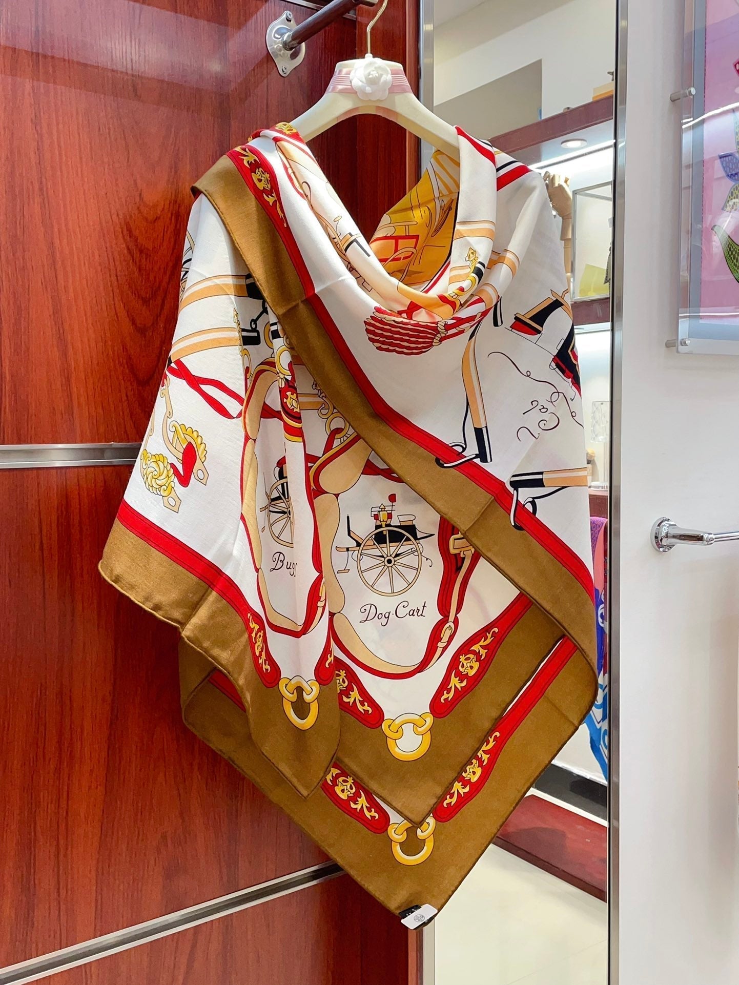 Palonniers Scarf 135 CM In Brown Colorful Cashmere And Silk 327474