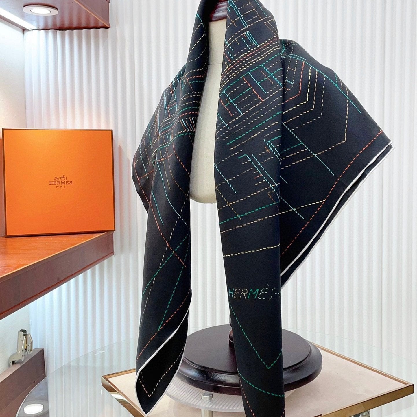 Pique Sellier Shawl 90 CM In Black Colorful Silk Twill 312868