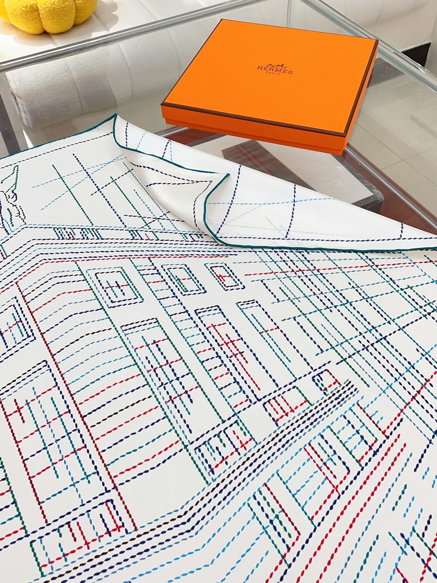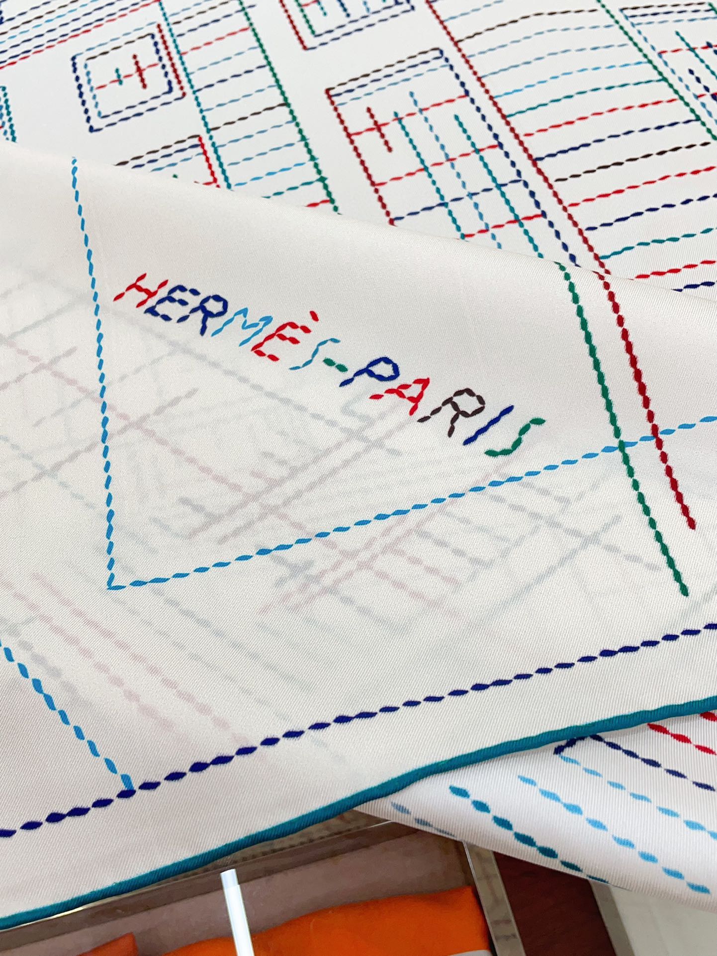 Pique Sellier Shawl 90 CM In White Colorful Silk Twill 312867