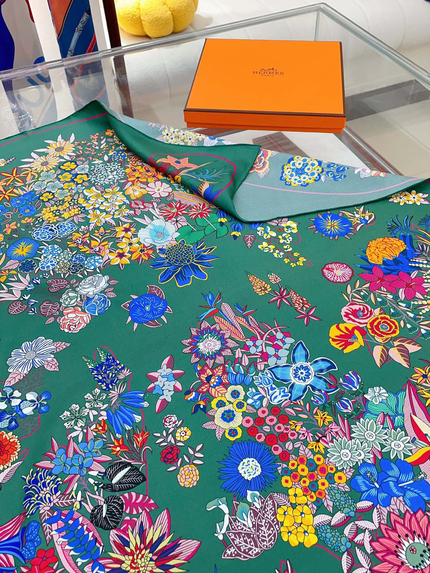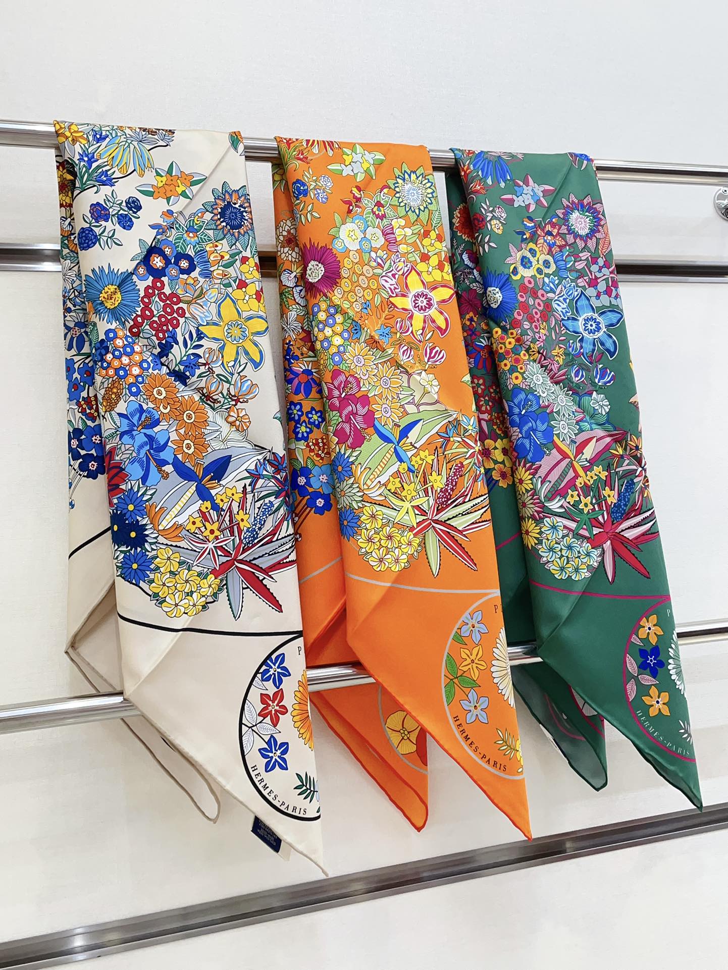 Planifleurs scarf 90 CM In Green Colorful Silk Twill 249921