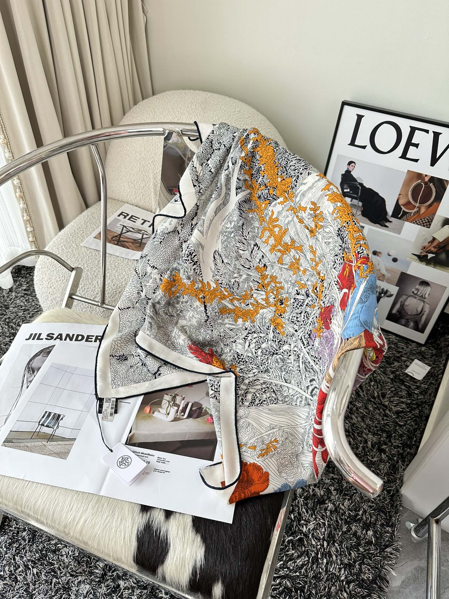 Retour A La Nature Shawl 140 CM White Black Colorful Silk