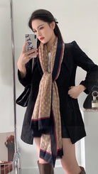 SCARF 200 CM IN KHAKI BROWN MIX BLACK CASHMERE 405264