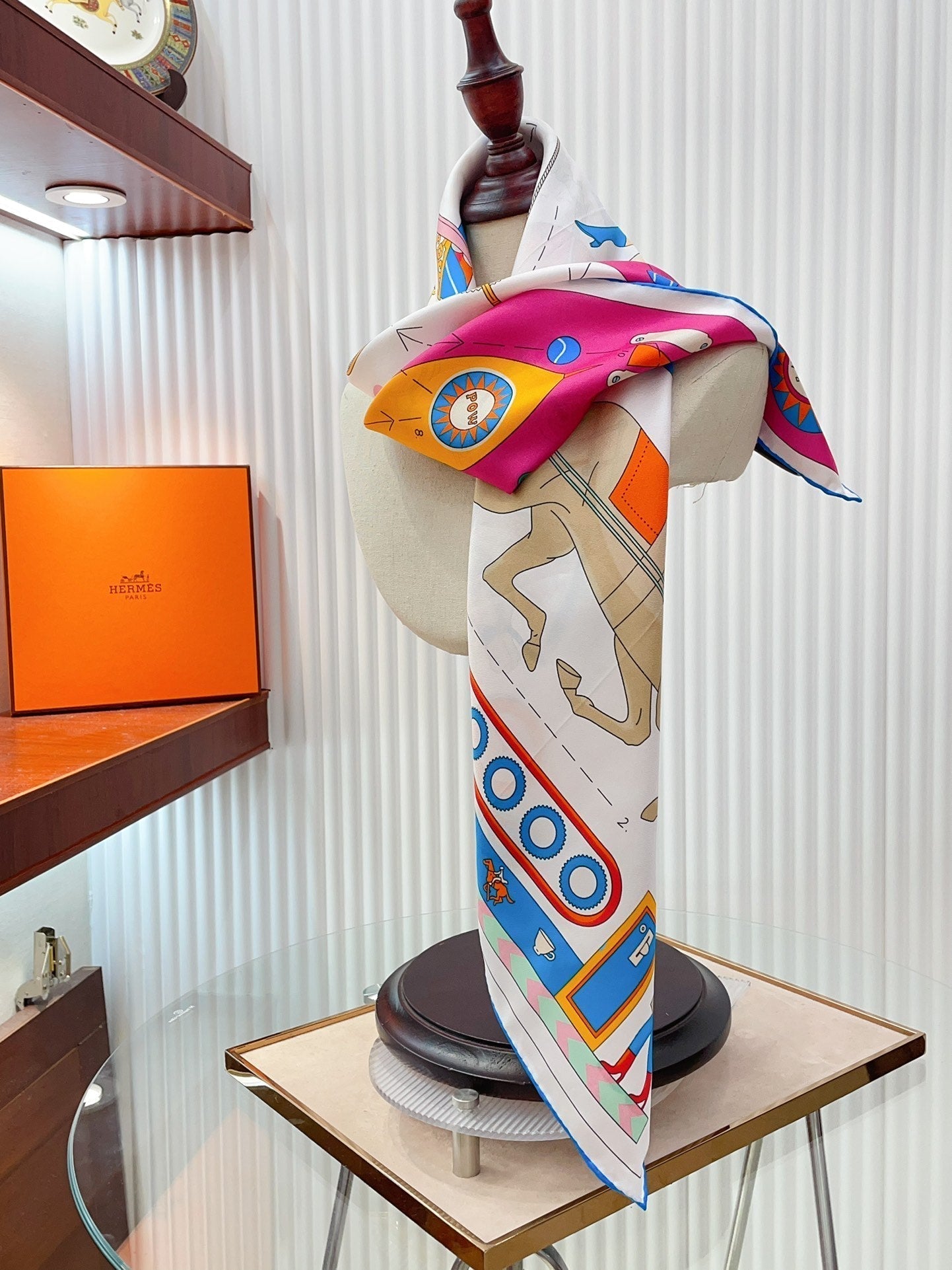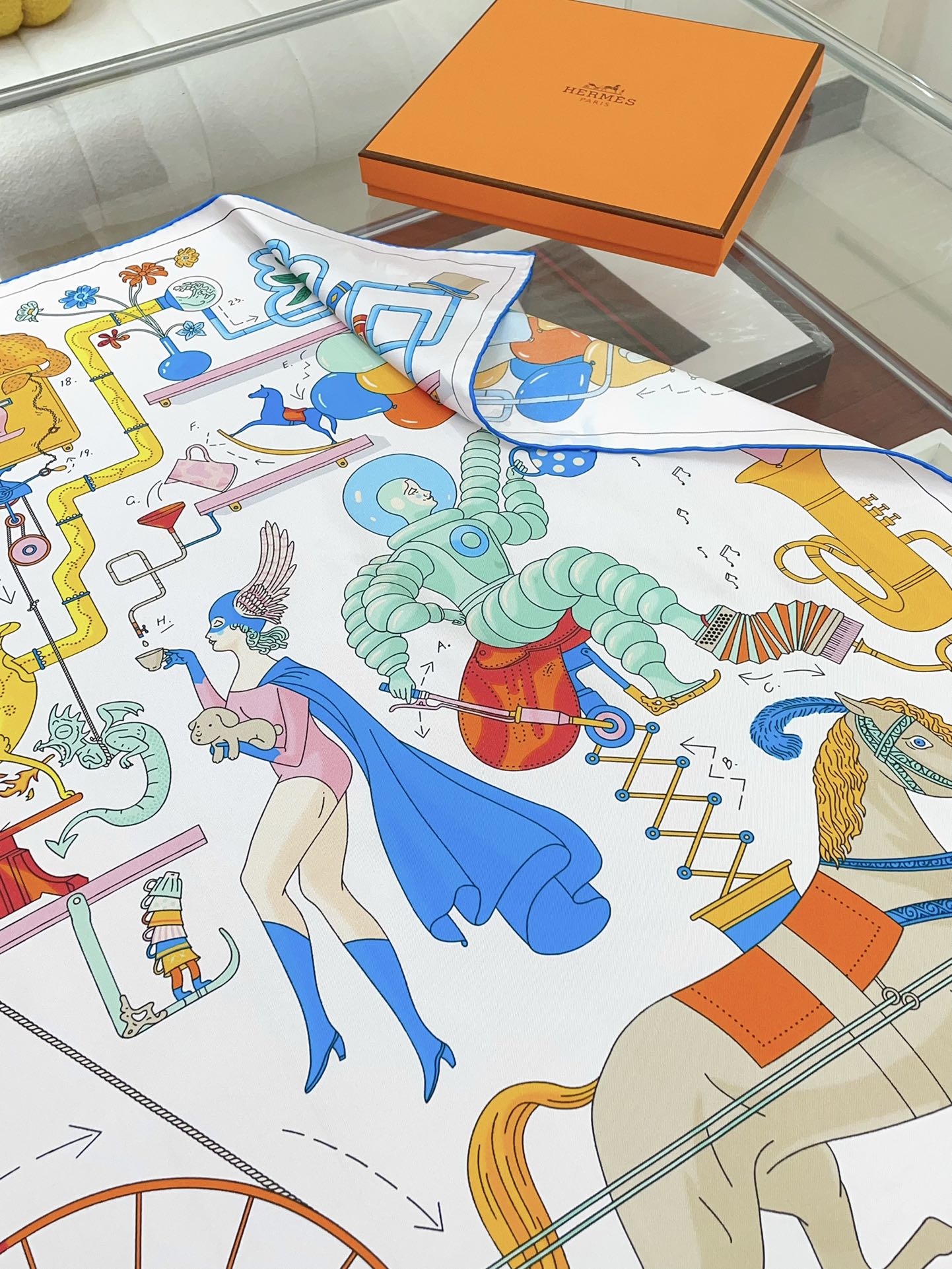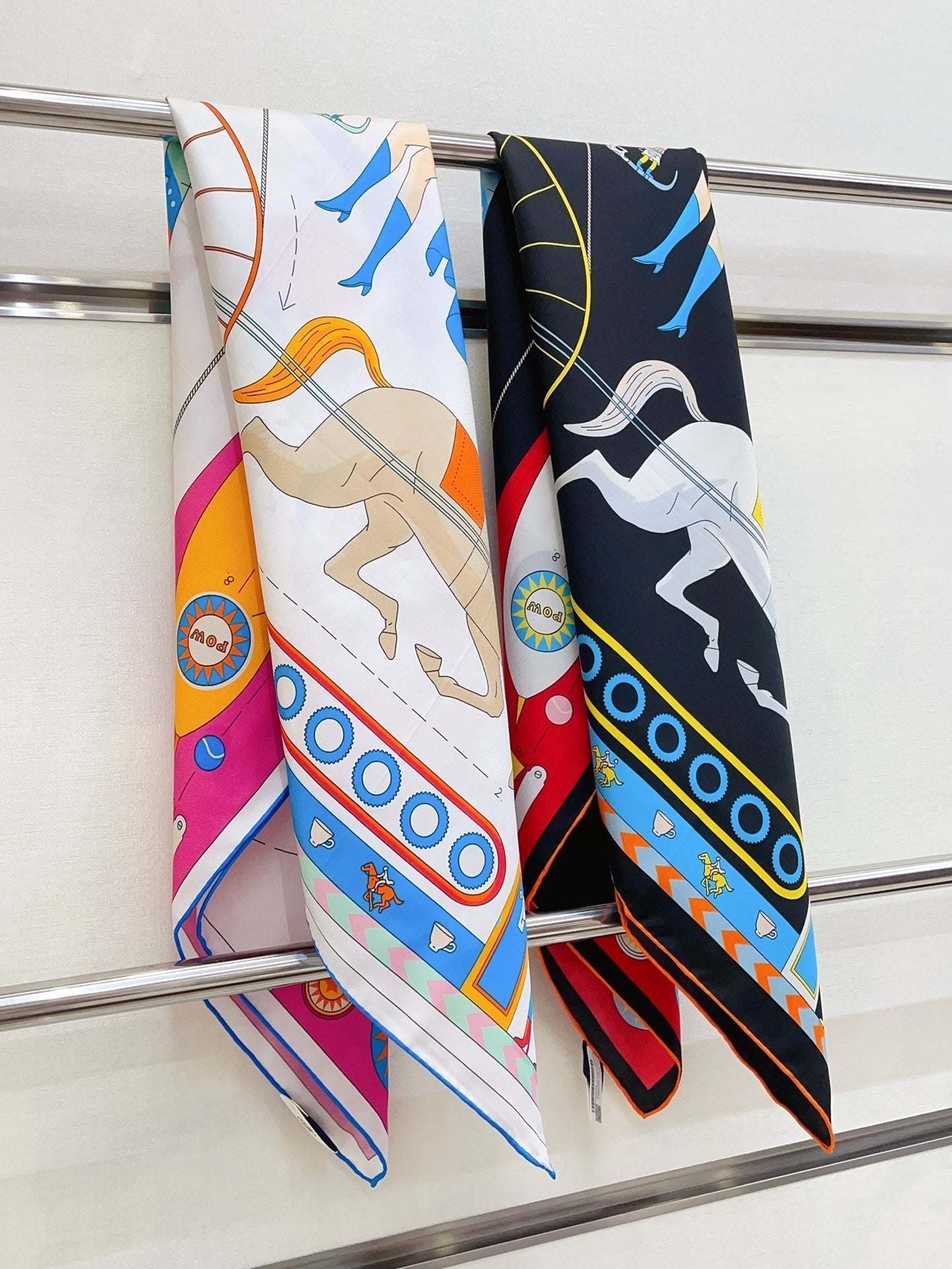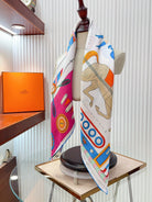 Tea For Two Scarf 90 CM In White Colorful Silk Twill 296691