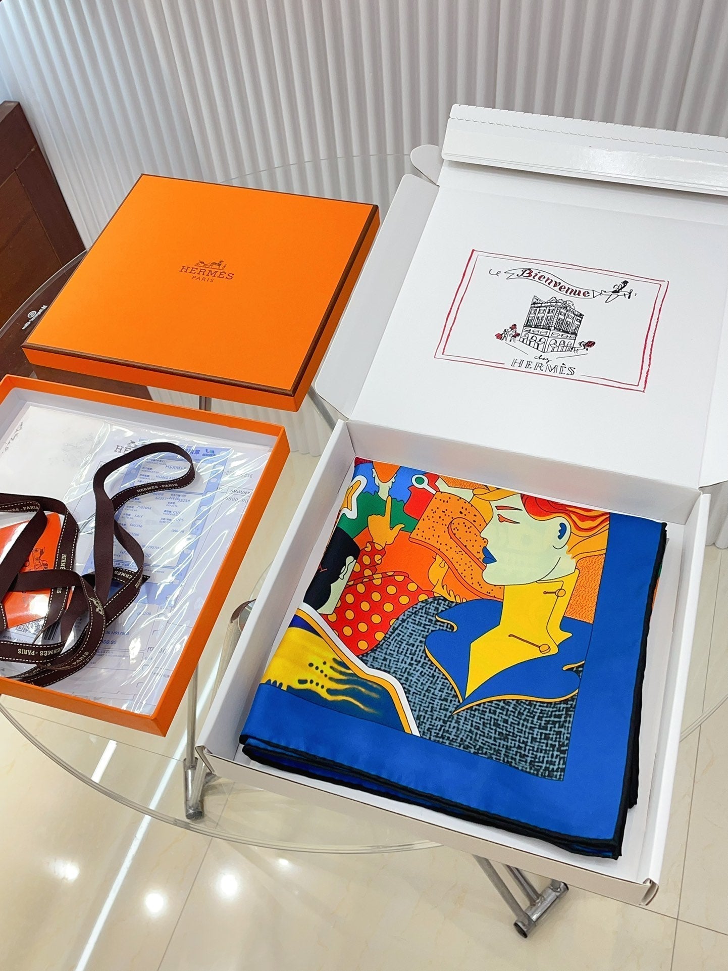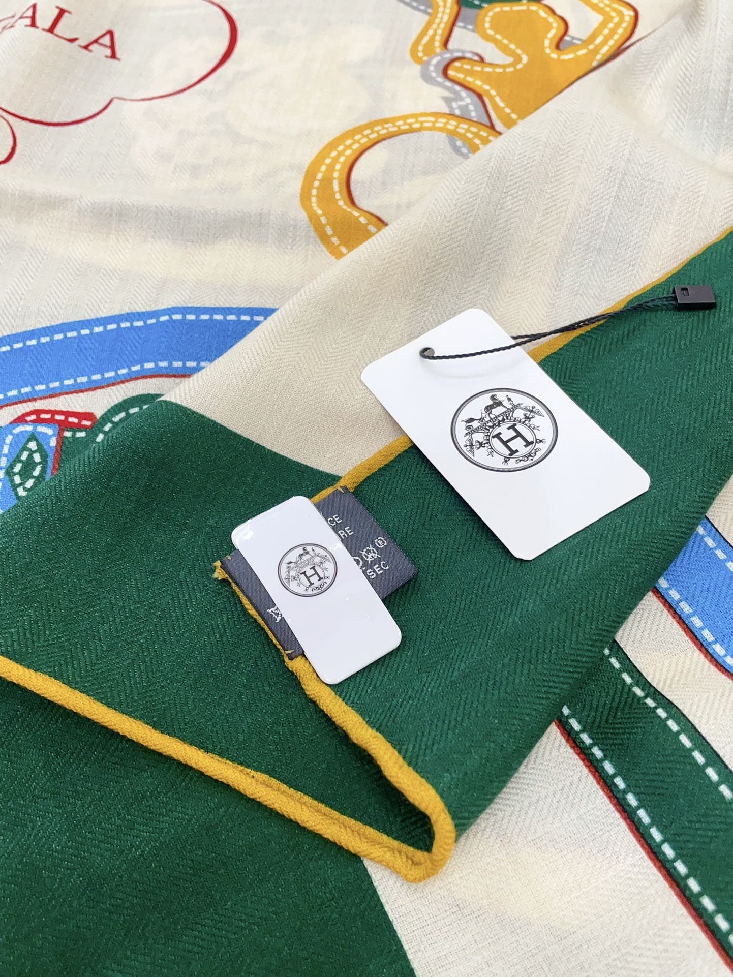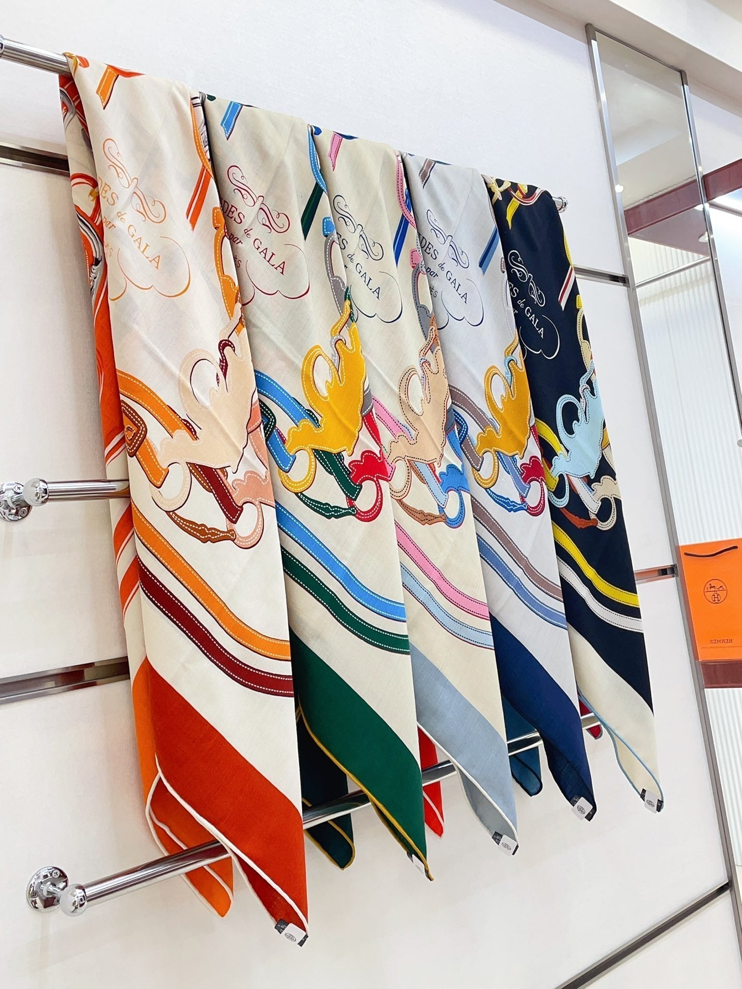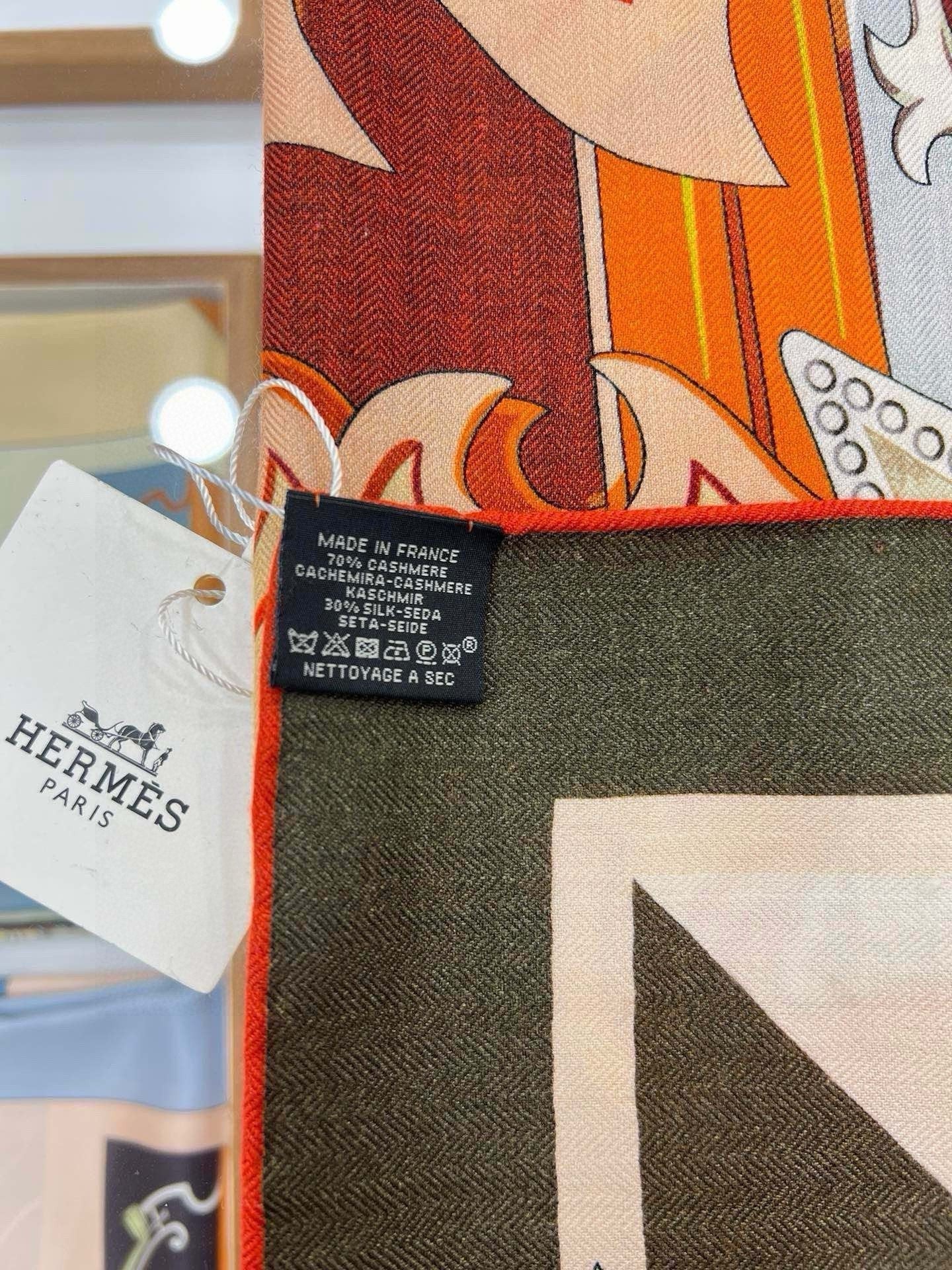 Carré Harnais De Cœur Scarf 140 CM In Orange Colorful Cashmere And Silk 335856