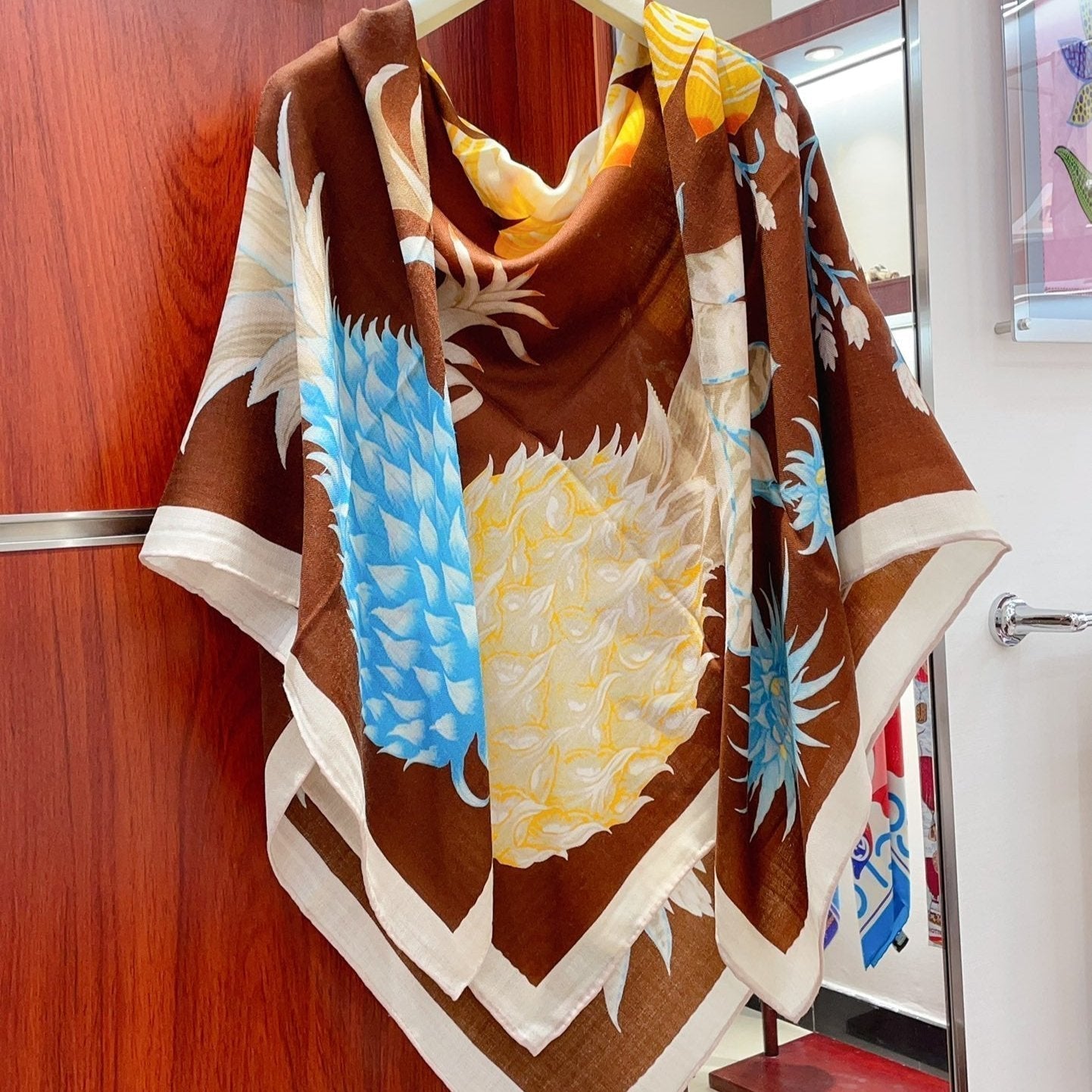 Carré Index Bromeliaceae 135 CM In Brown Colorful Silk Cashmere 228991