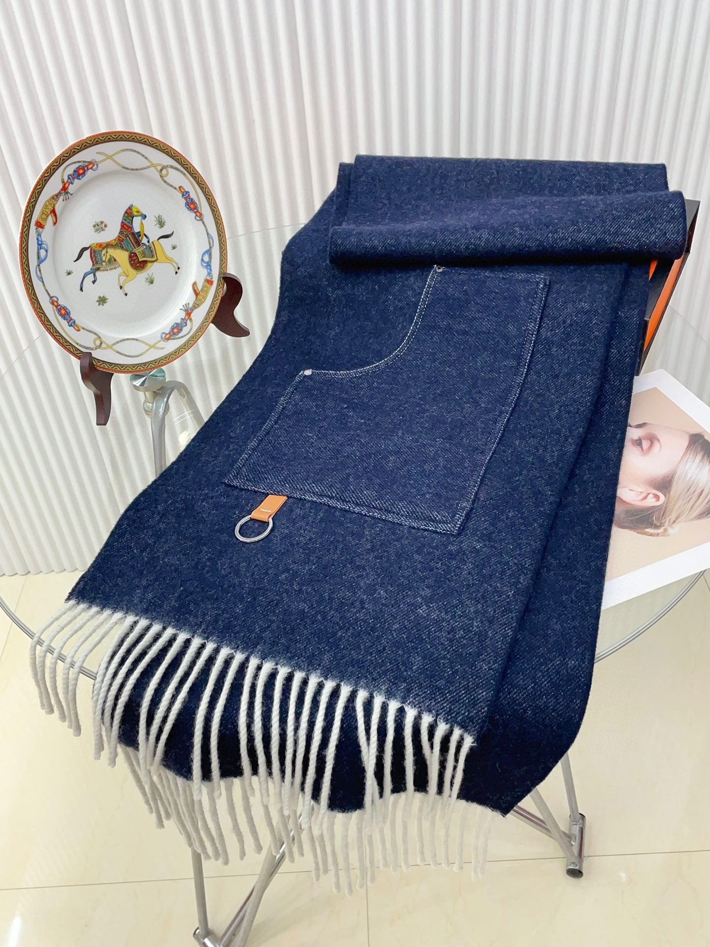 BBR Double-Sided Scarf 190CM Dark Blue Cashmere 293314