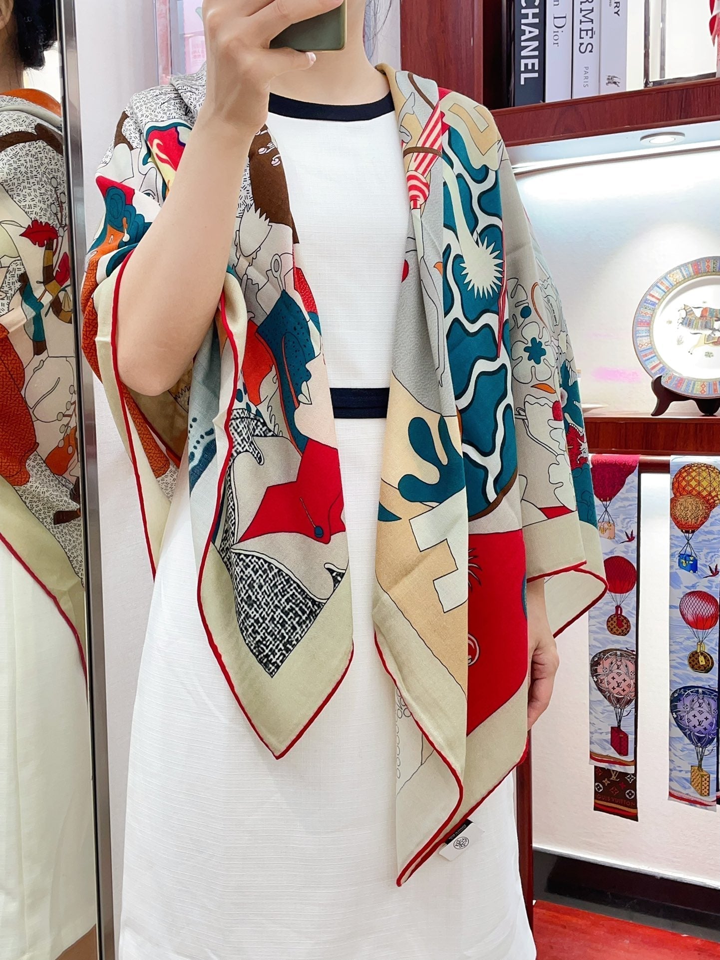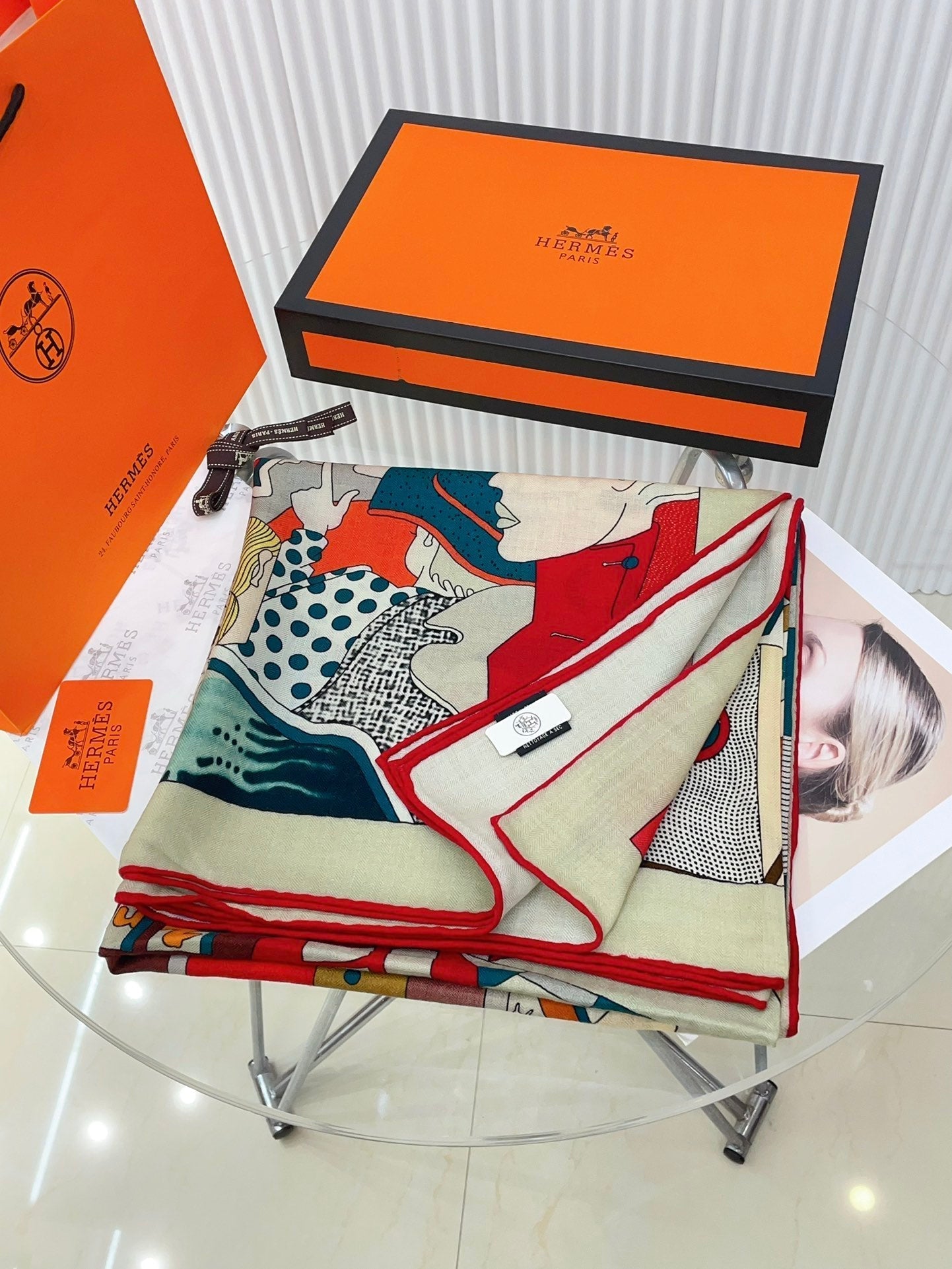 Brides Et Destin Scarf 140 CM In Red Colorful Cashmere Silk 375372