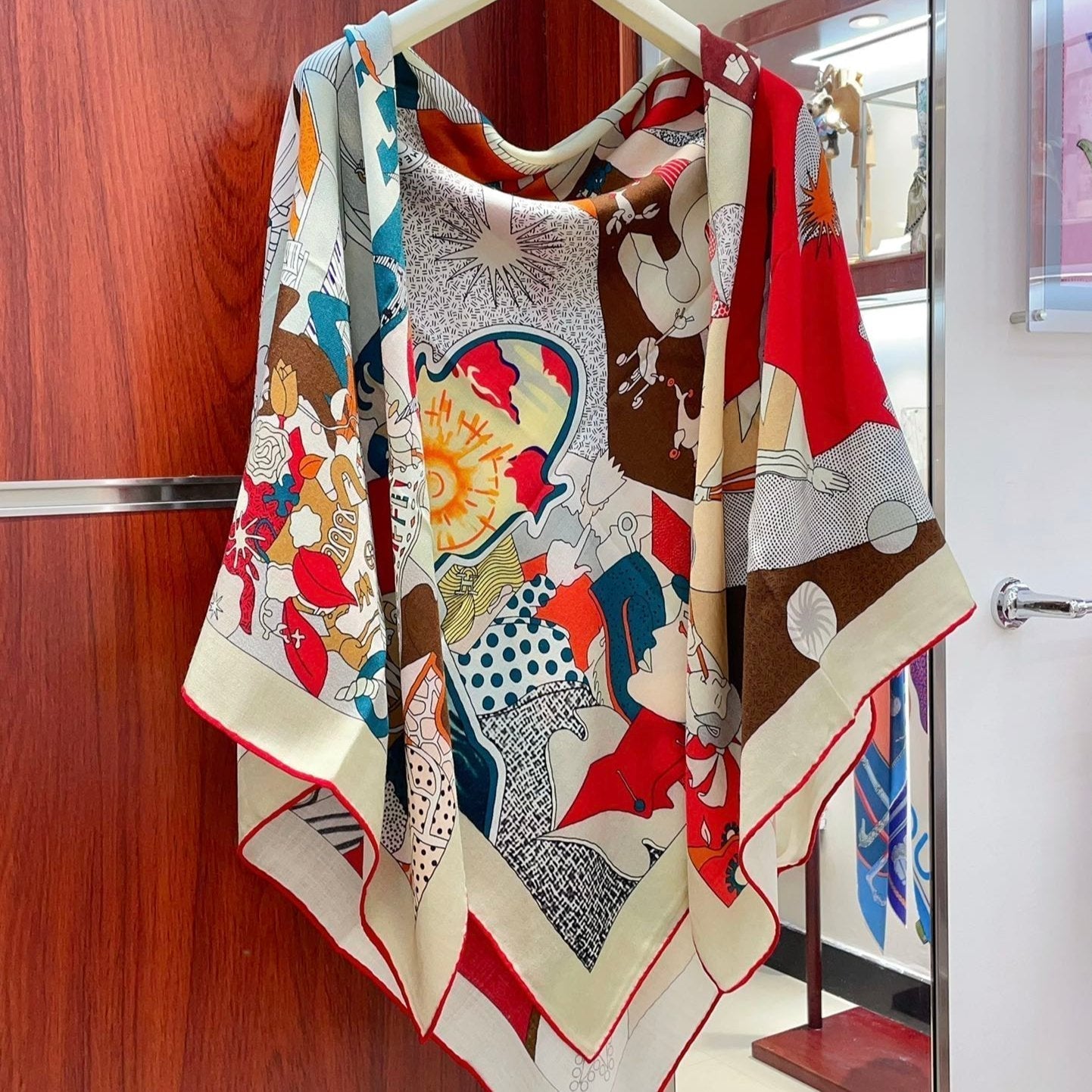 Carré Harnais De Cœur Scarf 140 CM In Red Colorful Cashmere And Silk 335858