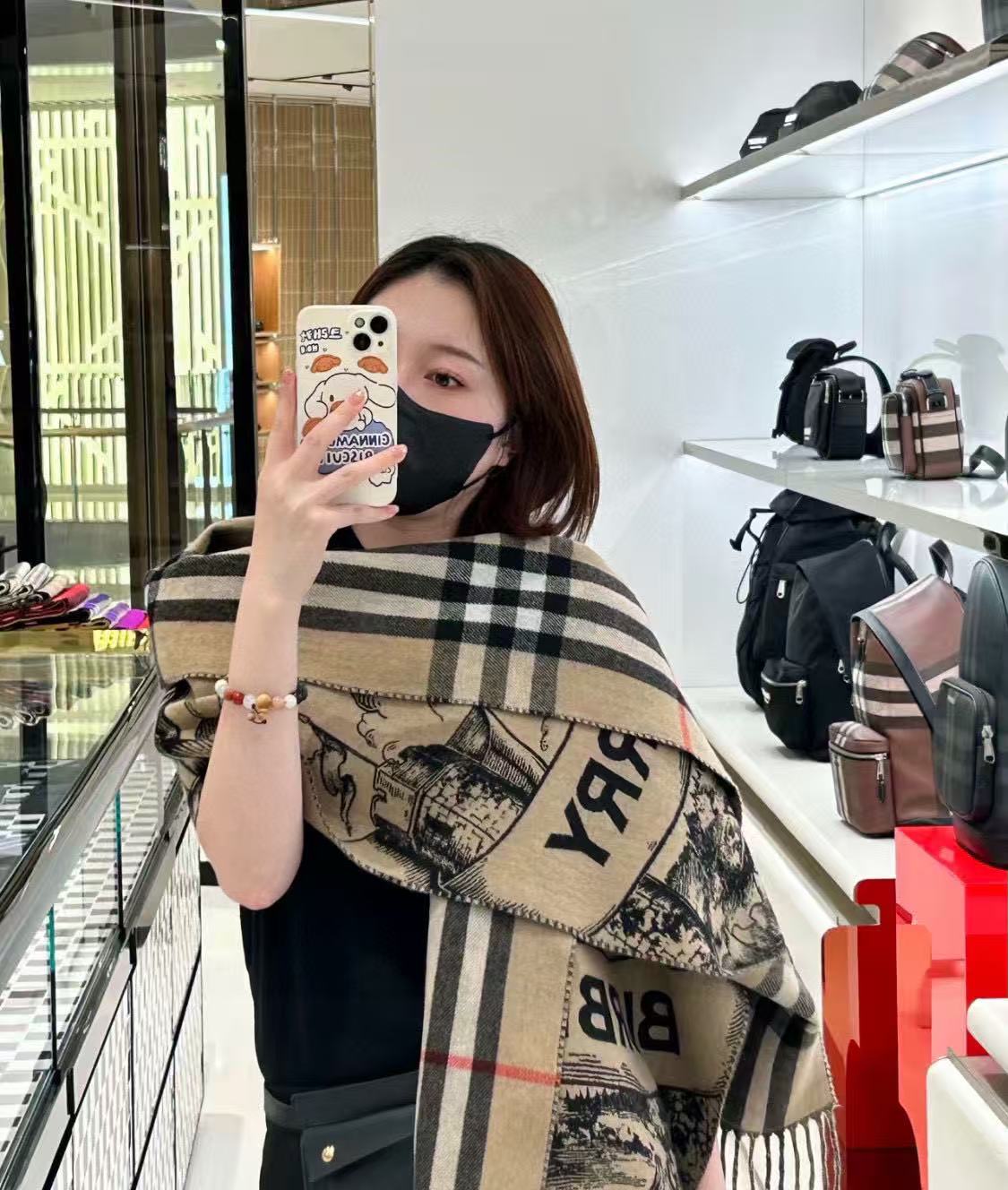BBR Double-Sided Scarf 200CM Light Beige White Cashmere 292976