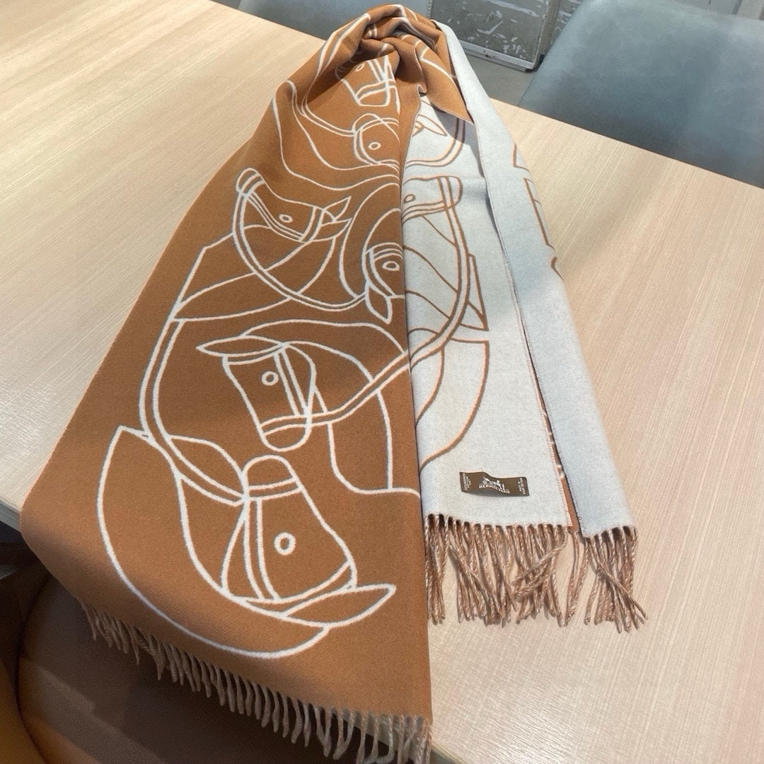 Casaque Entrelacs Equestres Scarf 195 CM Orange Mix Light Brown Cashmere