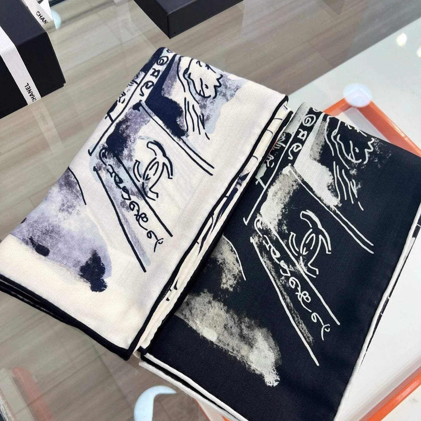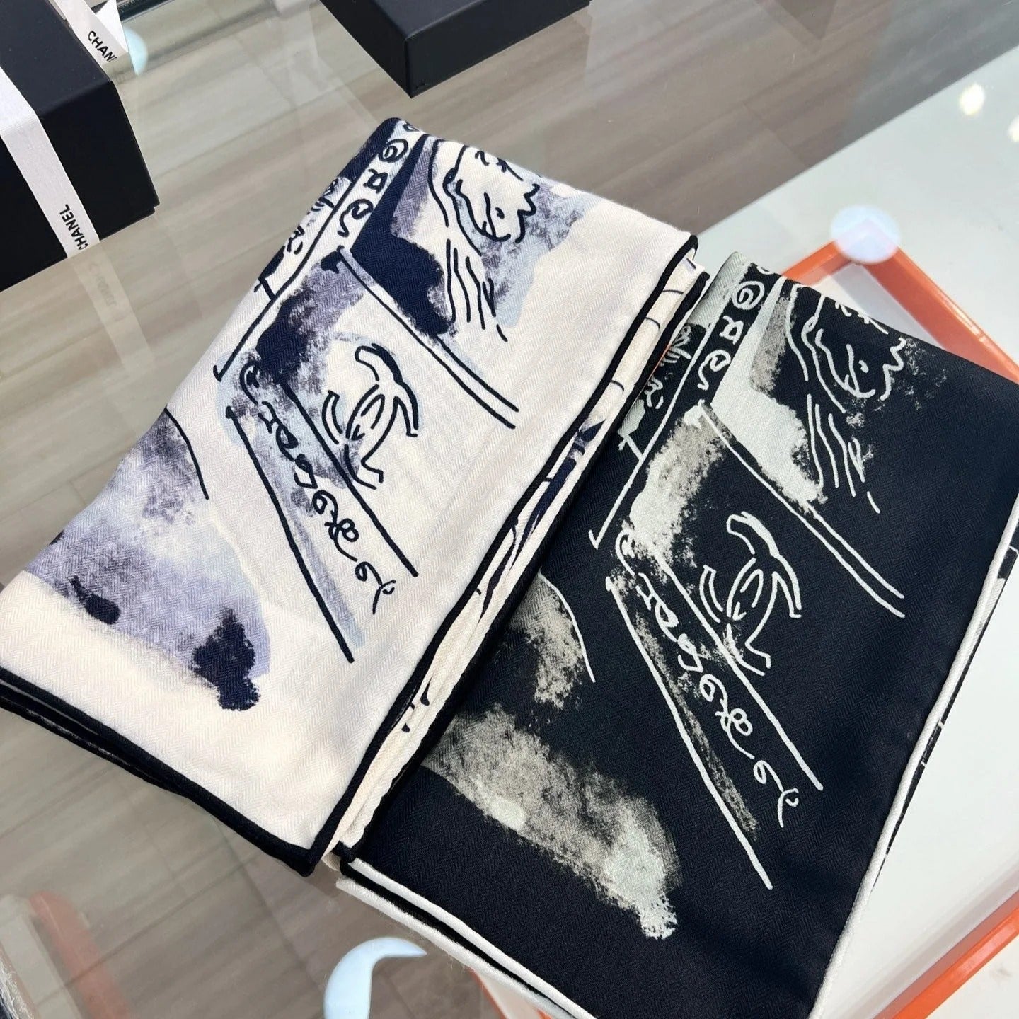 CHANEL 25S SCARF 140 IN SILK WOOL 726478