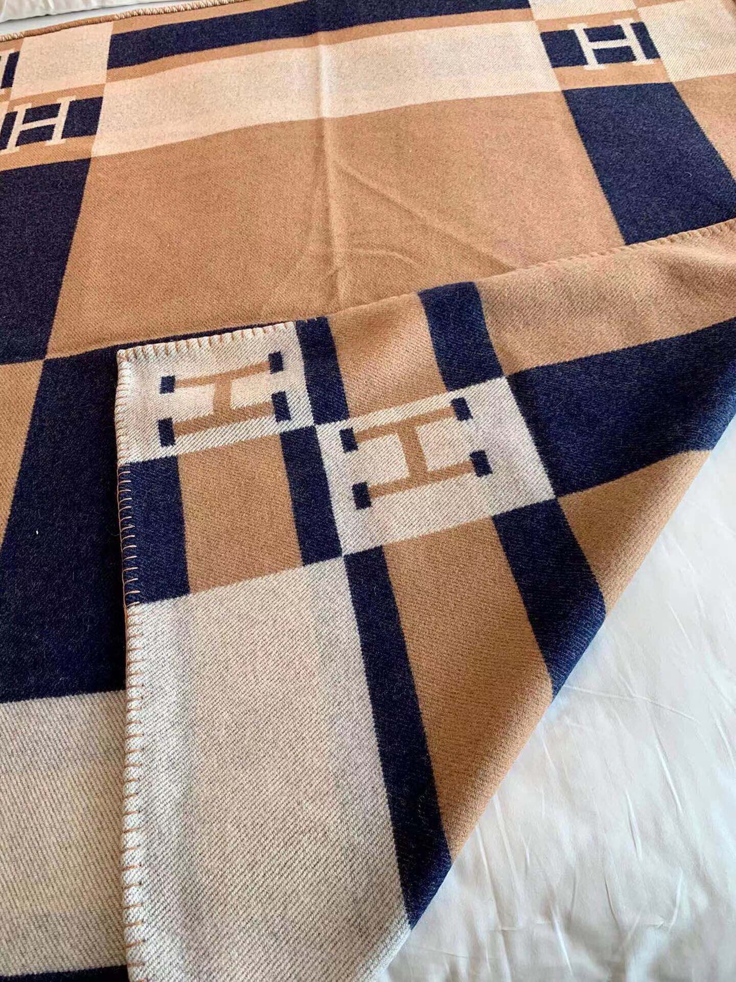 HM Avalon Throw Blanket Brown Blue Wool Cashmere