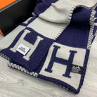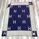 HM Avalon Throw Blanket Marine White Wool Cashmere