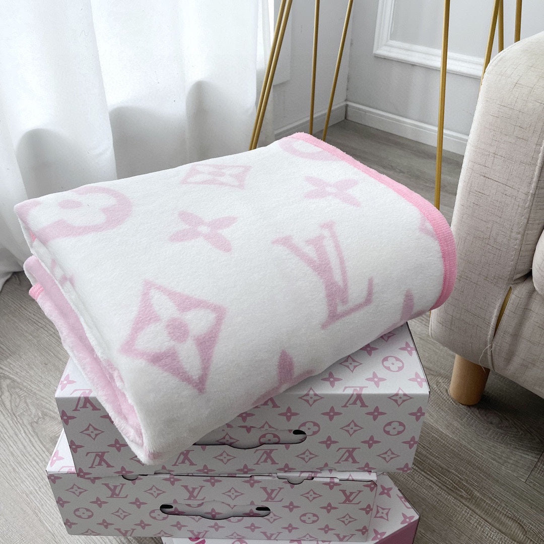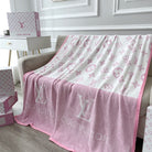 NEO MONOGRAM BLANKET IN WHITE MIX BABY PINK MILK VELVET 273949