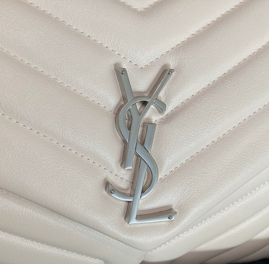 LOULOU MEDIUM 32 WHITE QUILTED LEATHER SILVER HARDWARE