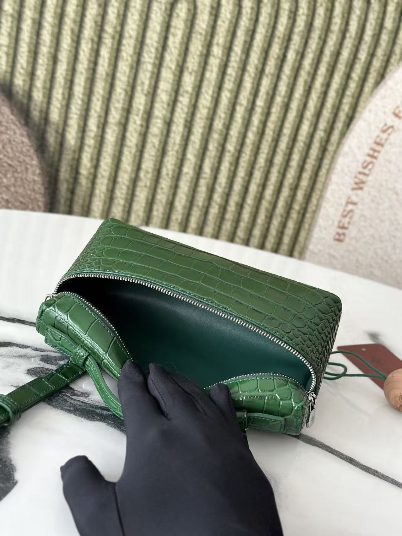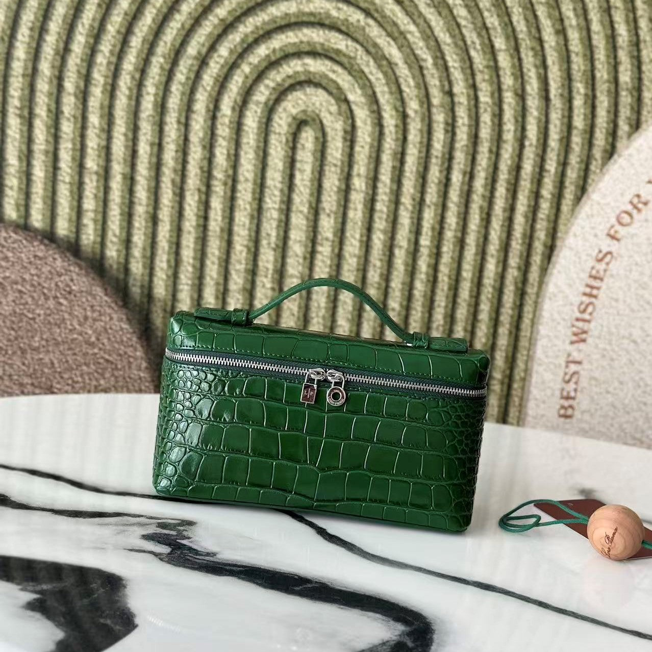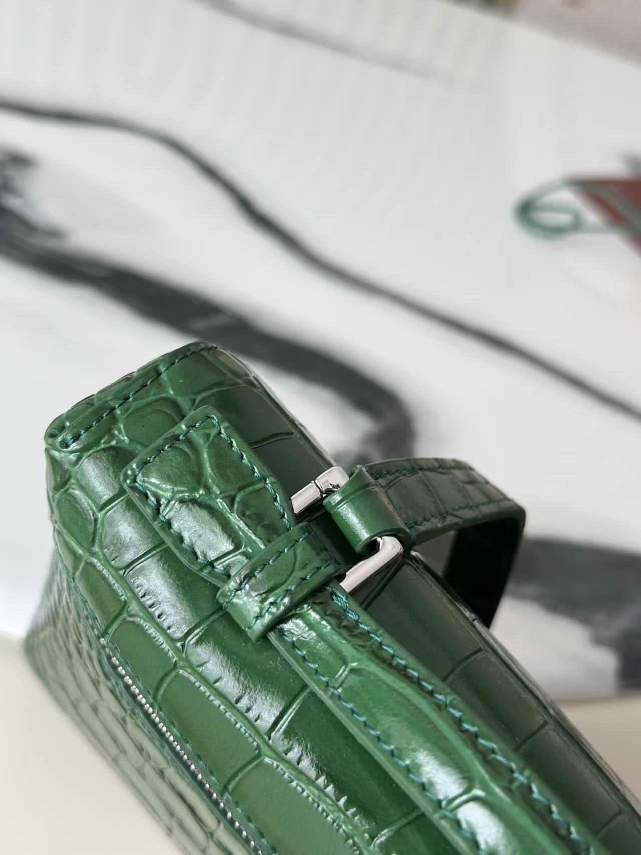 Extra Pocket L19 Teal Green Alligator Pattern Leather SHW