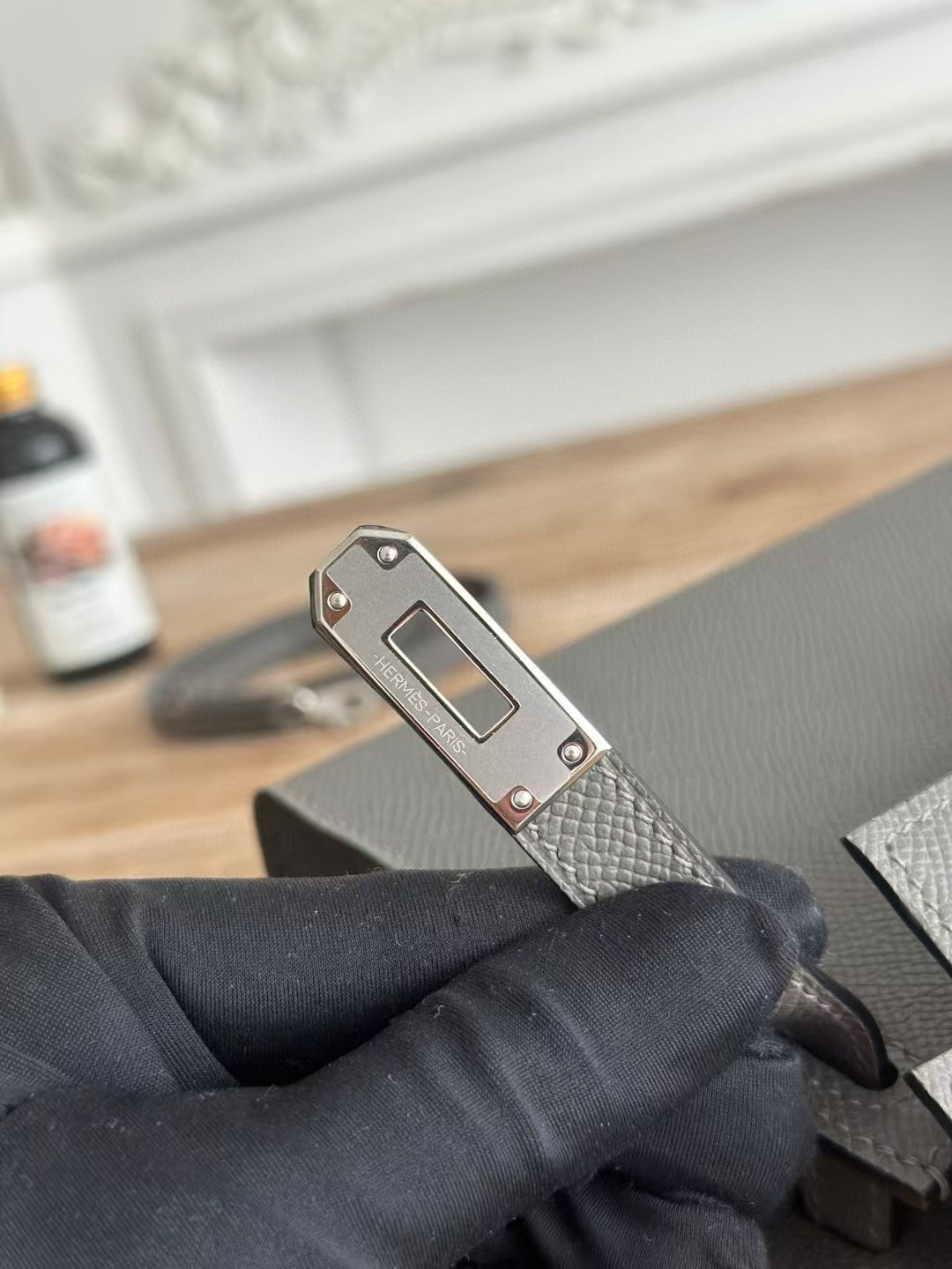 HM Mini Kelly 19cm Charcoal Epsom Silver Hardware