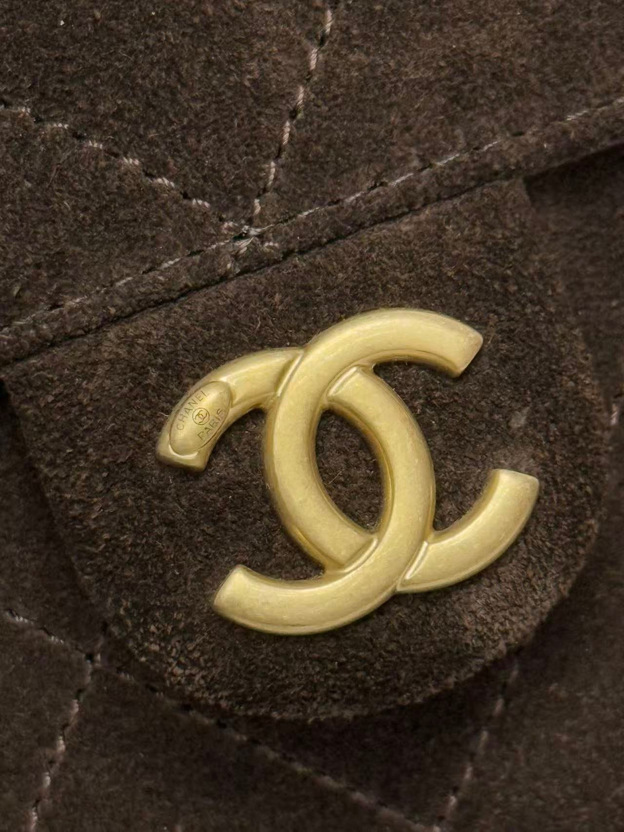 CHANEL 25S HOBO BAG 40 CM IN DARK BROWN SUEDE WITH GOLD HARDWARE