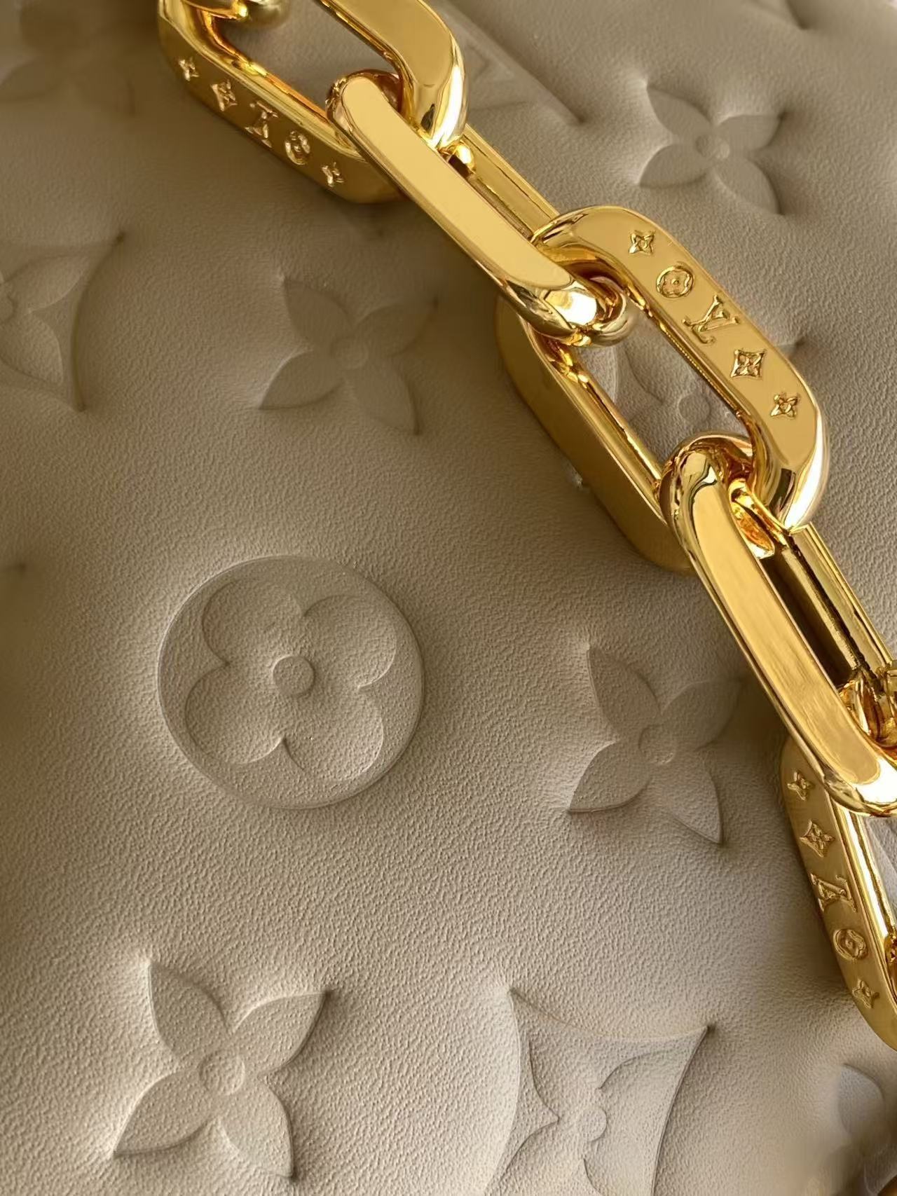 LV Coussin Bucket Bag Beige/Gray Galet Sheepskin