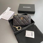 CC Hook & Chain Zipper Card Holder Black Caviar GHW 234733